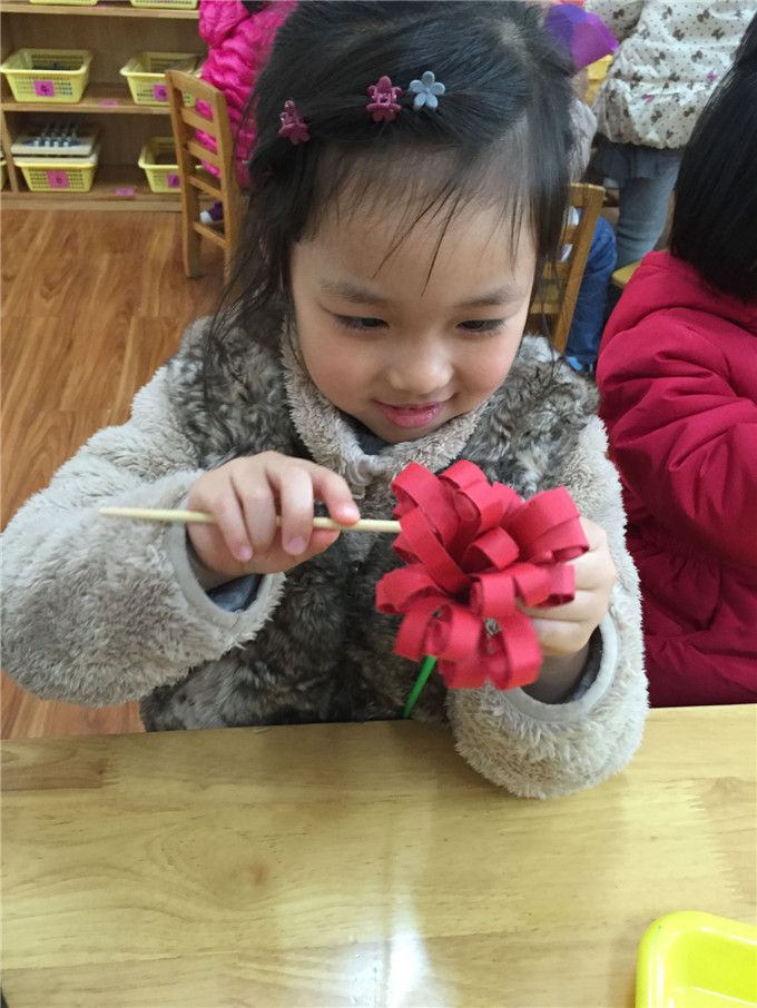 漂亮花束、爱心贺卡、爱心小提包,一件件用心制作的小礼物,汇成一串串欢乐的笑声,渲染着整个教室。
