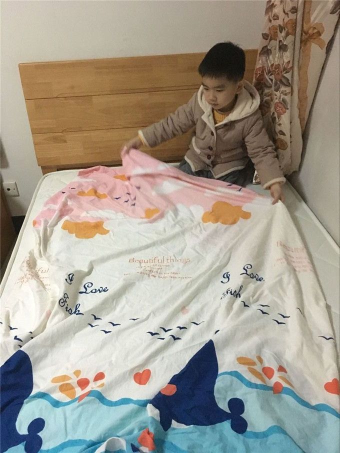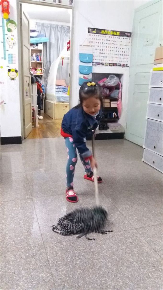你瞧化身成“小帮手”的我们,认真地擦盘子、擦电视、拖地板、折被子……