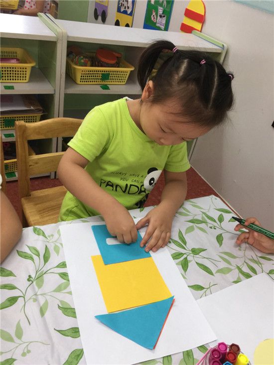 孩子们发挥自己的想象力把各种不同形状的图形宝宝变成了各种各样形态各异的东西:有百兽之王——大老虎;有充满了未来科技感的机器人;还有各种可爱的小动物等等。
