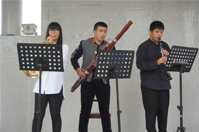 在天气晴朗的日子里,阳光照耀在厦门大学艺术学院的露天小剧场上,照耀在中一班小朋友一张张稚嫩又充满好奇的小脸上。由厦大艺术学院学生会的哥哥姐姐们为小朋友们组织的主题为“以乐器感受音乐,用音乐放飞想象”的探索乐器之旅正在悄然展开……