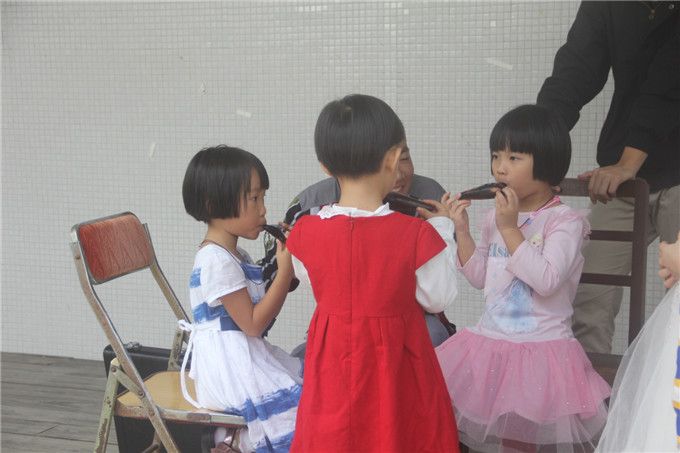 首先上台的是一位哥哥和一位姐姐,“咦?乐器在哪儿呢?”正当有小朋友提出疑问时,一阵悠扬欢快的旋律缓缓飘来,瞬间吸引了小朋友们目光:“那个小乐器在哥哥姐姐手里呢!”“像口琴一样!”第一场演奏在大家的赞叹中结束,拿着乐器的姐姐向大家介绍,她手里的乐器叫“陶笛”,这种乐器大小不同音色也不同哦,小的陶笛声音清脆,大的陶笛声音低沉。