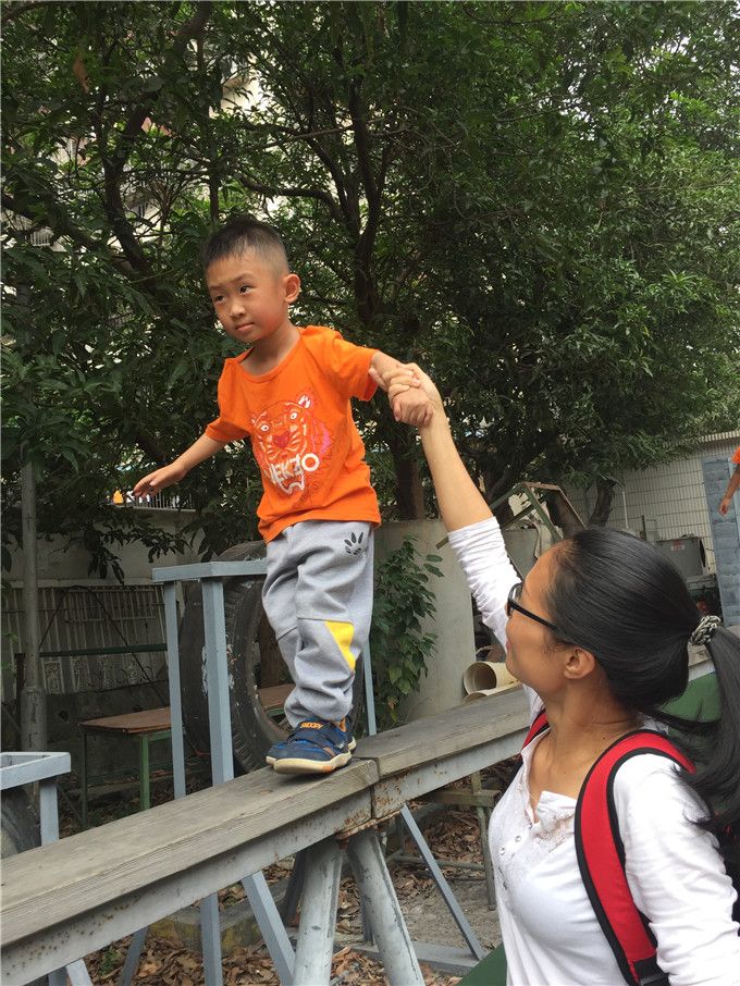 “这个跟我们天台上的独木桥好像,不过它好像有点高。”“妈妈,你可以帮帮我吗?我有点害怕。”“没关系宝贝,慢慢来,妈妈保护你”在爸爸妈妈的帮助下,孩子们克服了高度的困难,勇敢地迈出了步伐,挑战也突破了自我。