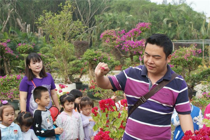 郑叔叔详细地向孩子们介绍了厦门市花——三角梅的特点,孩子们听得可认真了,不住地嘴里重复着“外面像花瓣一样的原来是叶子啊”,“三角梅有好几种颜色,粉的、白的、玫红的……”还打趣地跟老师说回家一定要考考爸爸妈妈知道不知道呢。