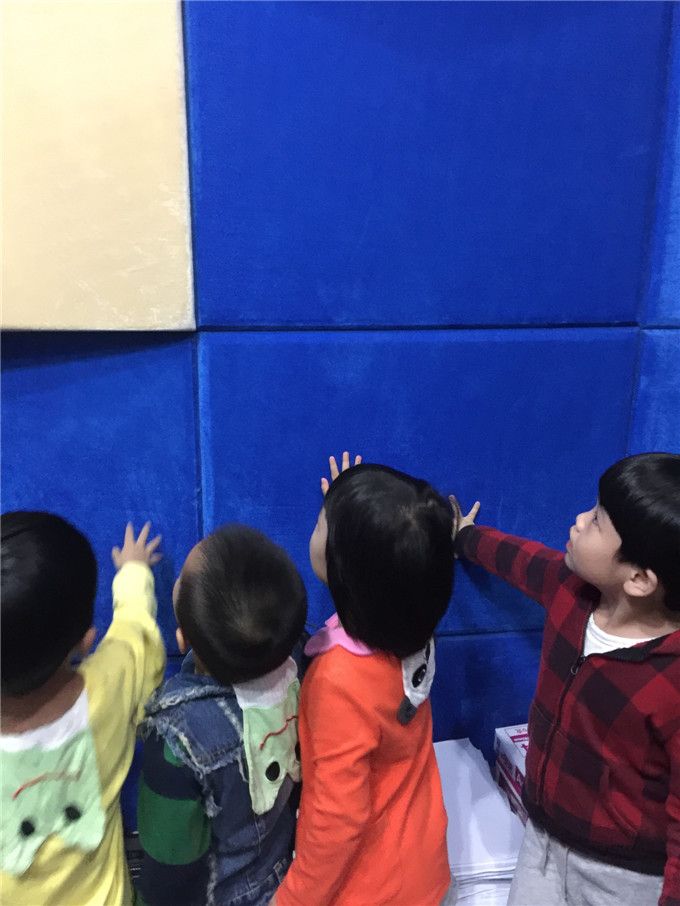 伴随着姐姐的声音,神秘的大门开启了。萌娃们争先恐后的说道:“哇,好漂亮呀。”“这个录音室的墙是蓝色的,好像海底世界,摸起来好舒服。”打开门,一片蔚蓝映入眼帘。“咦,怎么有个像床垫一样的东西呀。”“这个是海绵墙,它的本领可大了,可以把其他噪音隔离开,把我们好听的声音留下来。”
