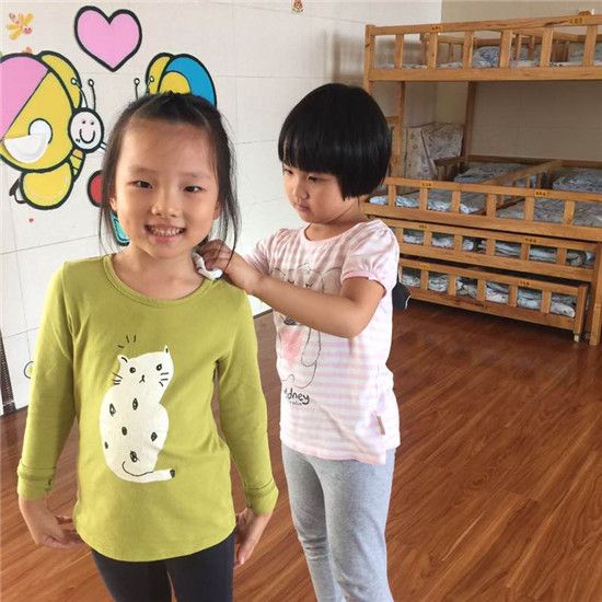 每当到了要出去户外活动的时候,“老师,我会帮瑾暄塞汗巾哦。”平常文静的韵淇 小朋友自告奋勇帮忙塞汗巾,成了老师贴心的小助手。