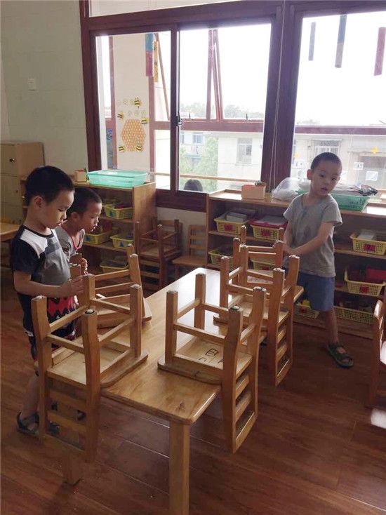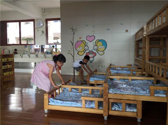 有进步的还不止这些呢,一到午餐结束,一群能干的小帮手便纷纷各就各位啦,老师擦完的桌子,我来把椅子搬起来,准备睡午觉了,我帮老师把窗帘拉下来,再“一二三”把小床推开,其他小朋友们有秩序地在教室外看着书本等待,到了要去散步的时候呀,还有小小图书管理员帮忙把书本摆放整齐呢。