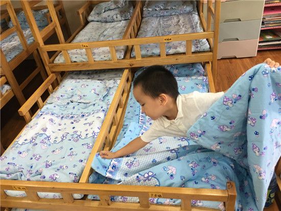 美好的午睡过后,“小能手们”依然将自己打理得井井有条,在老师的指导下,他们早已学会自己叠被子啦,你看林鸣仔细地将被子的角对齐,再看明易小朋友虽然个头不大,但叠起被子却拿出了压倒性的阵势呢。