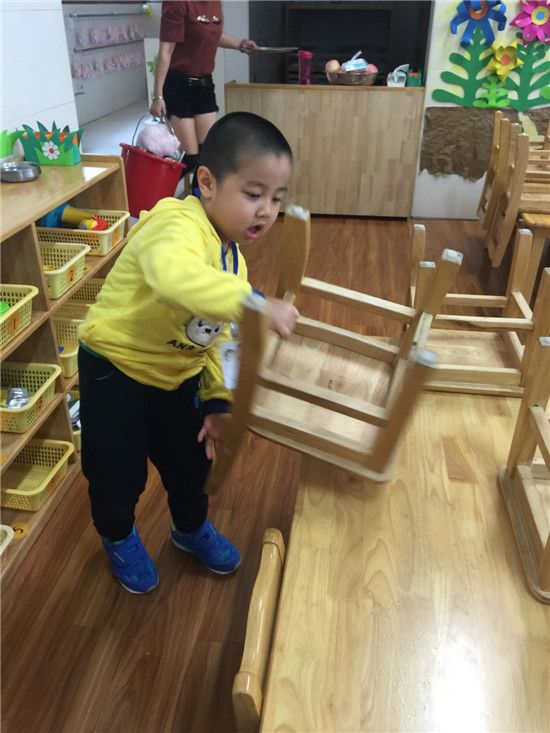 走进中六班,你每天都会看到七八个小朋友在老师的引导下,愉快地摆椅子、收拾早餐用具、发放点心盘和小勺子、检查折叠垫汗巾等画面,这是我们班这学期开展的“我是小小值日生”活动的一幕。