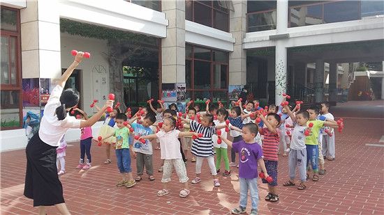 这学期我们中班的小朋友还担任本学期升旗仪式开场舞带动跳的光荣任务,你瞧我们下认真地排练着,为下周的带动跳做好准备。动感的舞姿让整个活动拉开了很好的序幕。