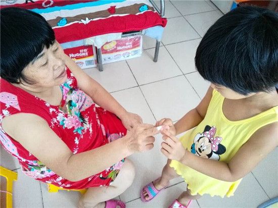 “奶奶你怎么受伤了,我来帮你包扎伤口吧。”佳音小朋友轻轻地为受伤的奶奶贴上创可贴,到了晚上,还帮奶奶捏捏腿按按摩,讲着自己学会的小故事,看着小孙女可爱的模样,奶奶露出欣慰的笑容。