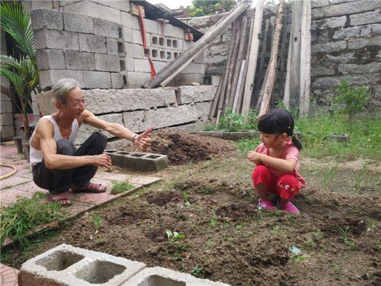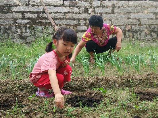 其宥小朋友则置身青葱的菜地,和爷爷奶奶体验种菜的乐趣,咦,这里和我们的“开心农场”很不一样呢,和爷爷奶奶一起玩耍可有趣了,爷爷开心地竖起大拇指!