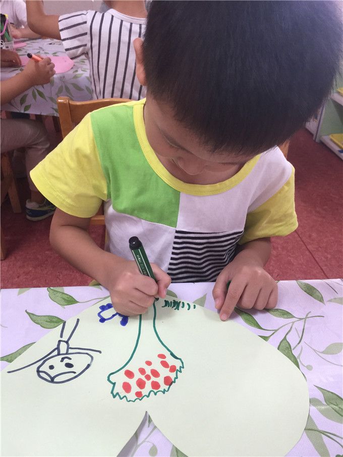 俗话说得好,打铁要趁热。一眨眼的功夫,小朋友已经迫不及待地动起小手,手拿画笔专心致志地投身进了贺卡的制作。转眼间,一个个爱心在孩子们的手中变得格外美丽。孩子们原本认真不苟言笑地脸上也渐渐露出了“胜利”的笑容,纷纷拿着自己的成果与身旁的小伙伴窃窃私语,你看看我的,我看看你的。