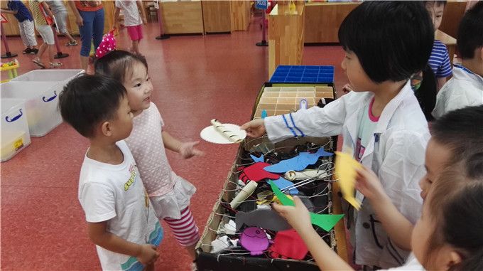 瞧!大班的哥哥姐姐,带着我们中班的萌娃们在南强小镇里已经玩的乐不思蜀呢!“这里好大好漂亮哦,可是,可是我不会玩。”“来,没关系,姐姐带你一起当服务员哦!别紧张,我教你!”姐姐细声细气地安慰着紧张的思齐。煜楷和致博已经等不及了,主动地拉着哥哥姐姐的手,开心地当起了小顾客来。