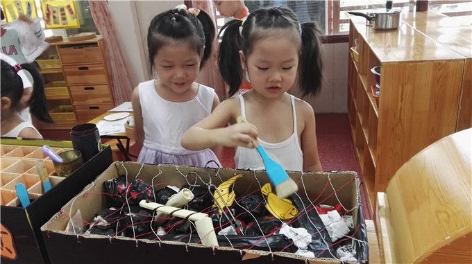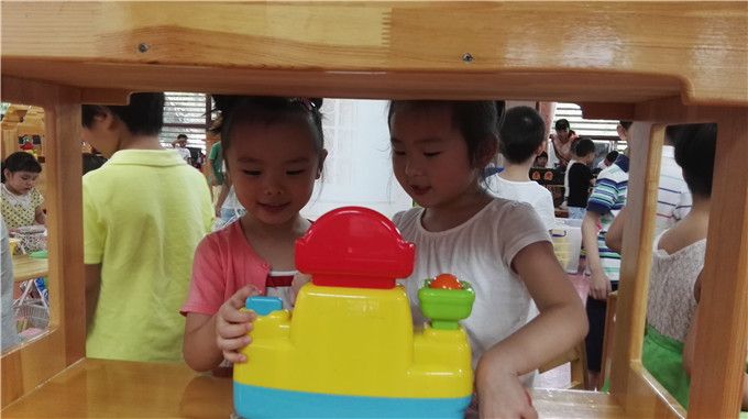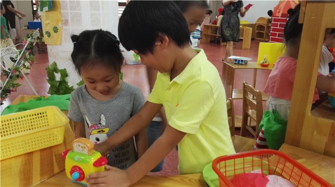 大小萌娃们的互动角色游戏,让哥哥姐姐们更加有游戏的主人翁意识,有带领弟弟妹妹游戏的自豪感,而且,小萌娃们,也从哥哥姐姐的身上潜移默化地感受到了游戏的乐趣,在不知不觉当中,融入到了生活化的游戏当中。