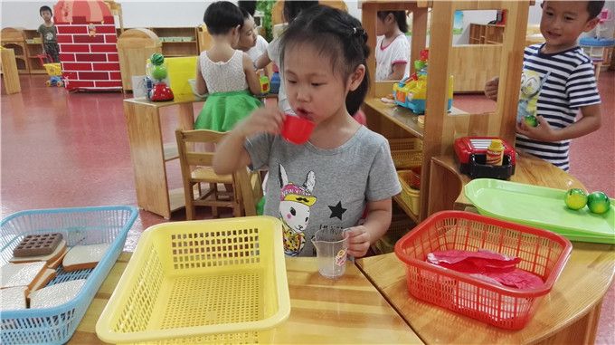 “我今天和姐姐学做了榨果汁,下次游戏的时候我就可以自己来制作果汁了。”紫欣神气地说。佳卉也不甘示弱地说:“大哥哥刚才带我逛街,吃了好吃的麦当劳,而且大哥哥还教我说礼貌用语哦!”“俊言,我也是,我当服务员,和顾客说欢迎光临,你好时,我发现大家都很开心地进来喽!”……孩子们兴奋地交流着今天和大哥哥姐姐一起游戏的快乐时刻,小脸蛋儿都是甜甜的满足感。