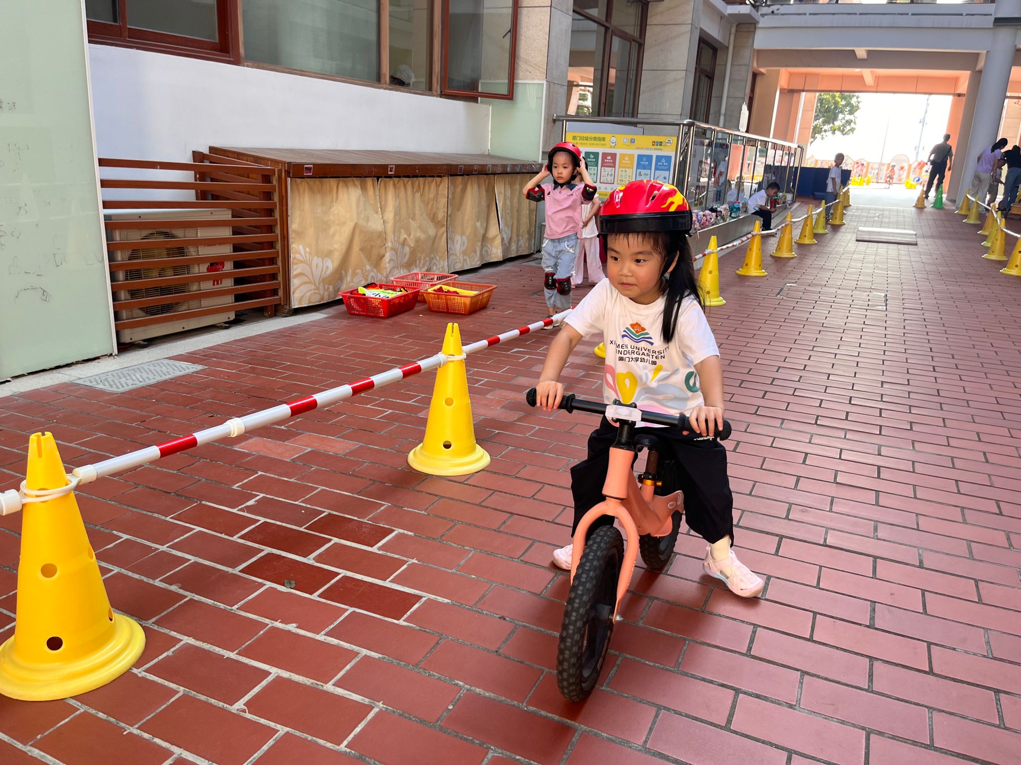 骑着小车穿梭在户外活动场地,绕过小障碍、越过小坡道,宝贝们在骑行中锻炼了勇气,也收获了满满成就感。