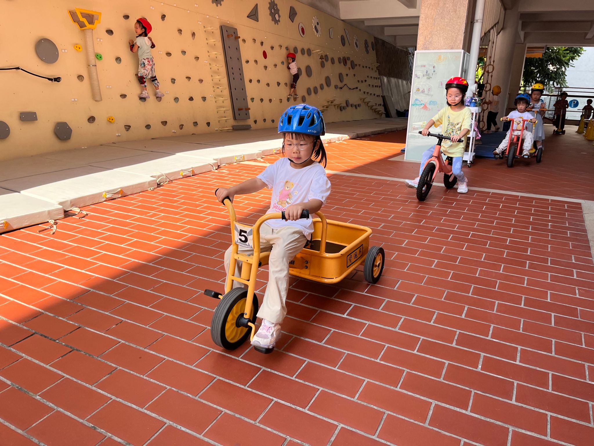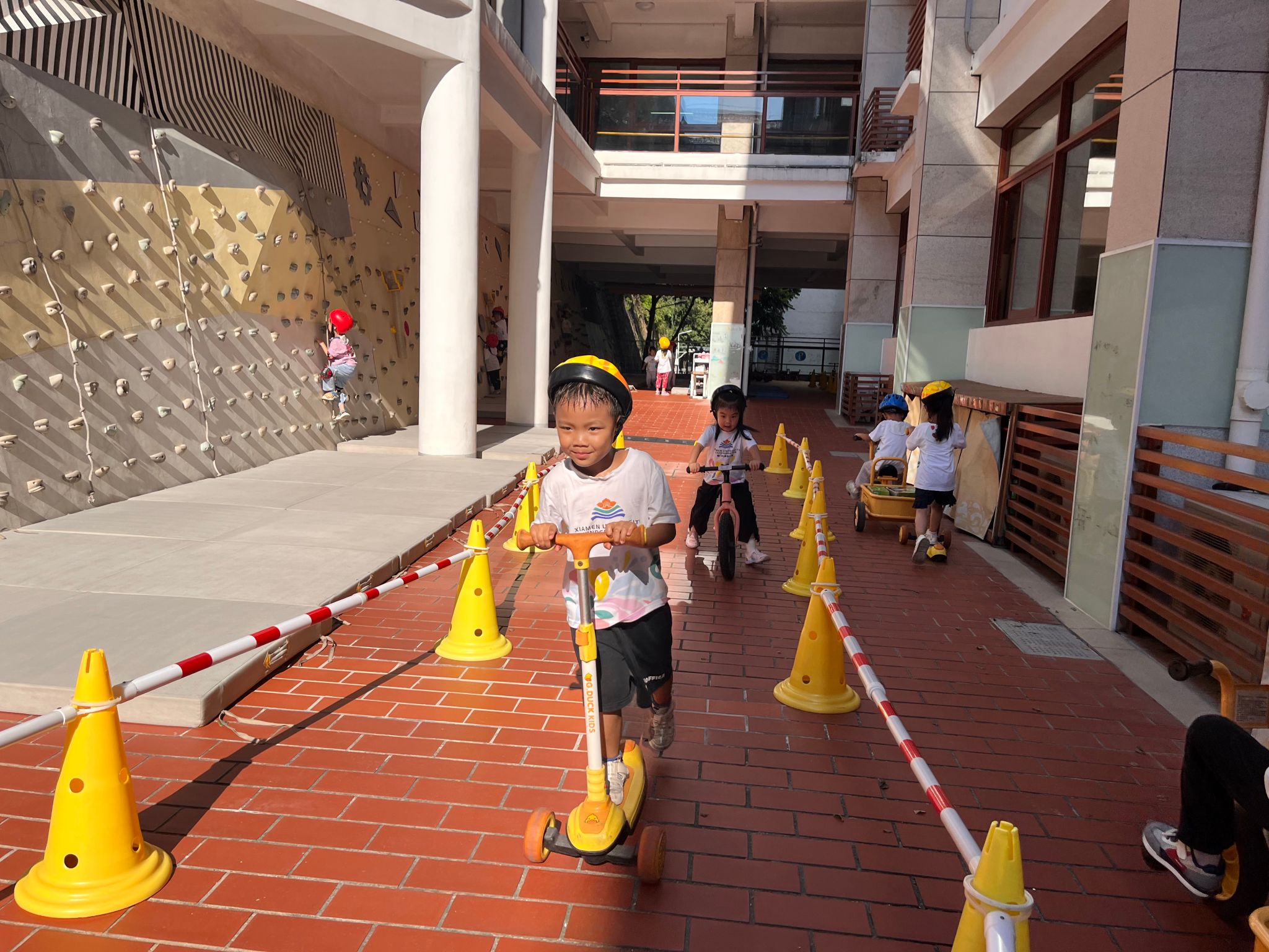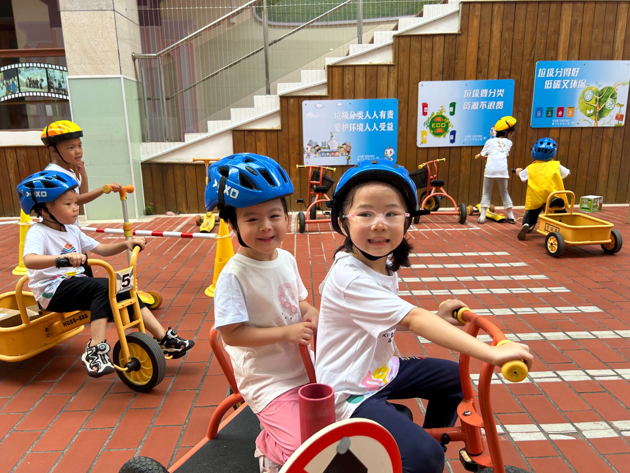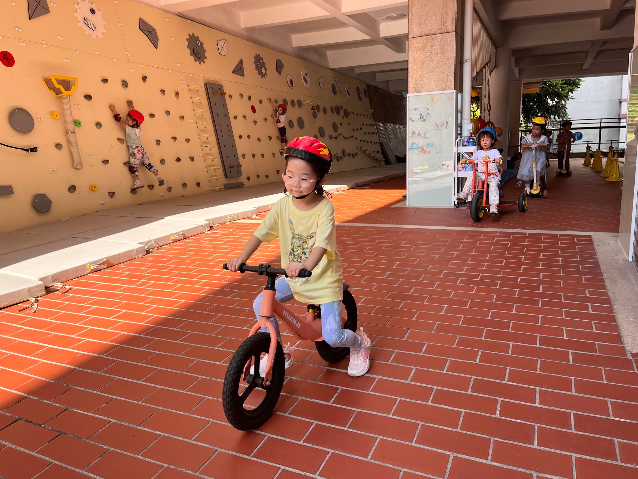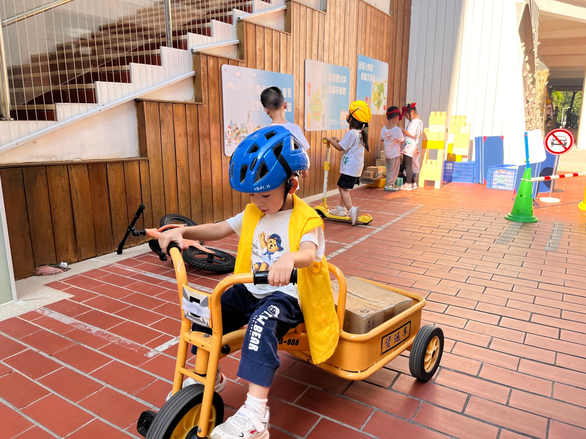 骑行区有好多“新朋友”滑板车、平衡车还有带小货车……看着种类多多的车辆,宝贝们纷纷跃跃欲试,戴上头盔,踏上骑行之旅……