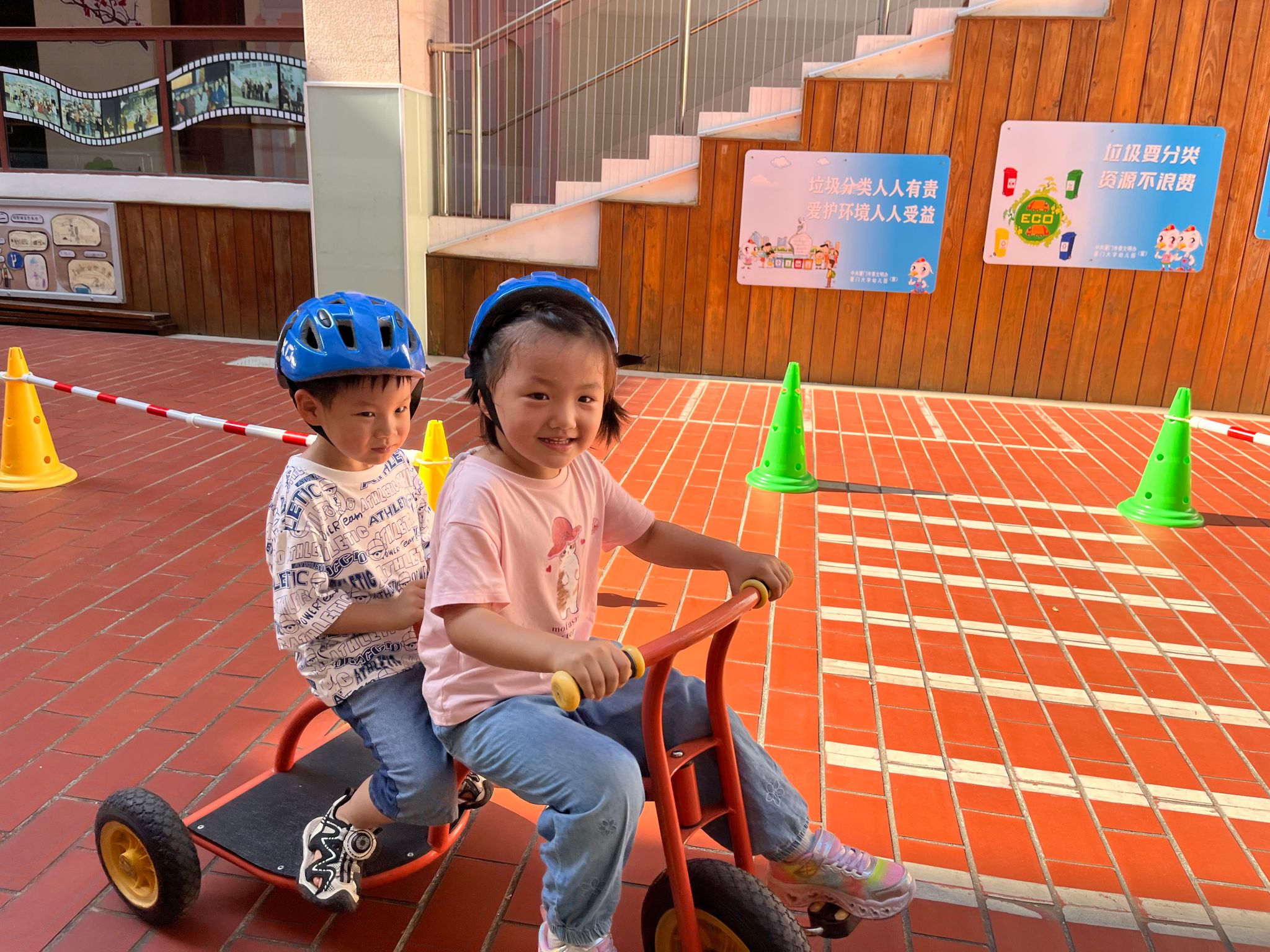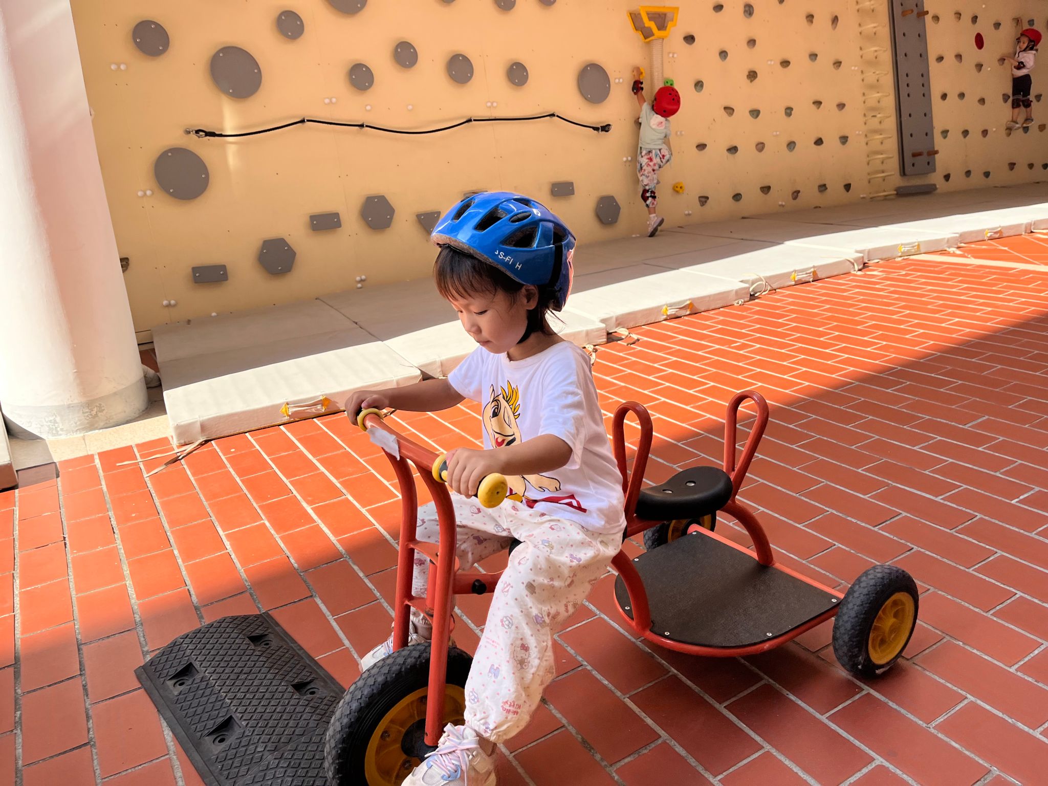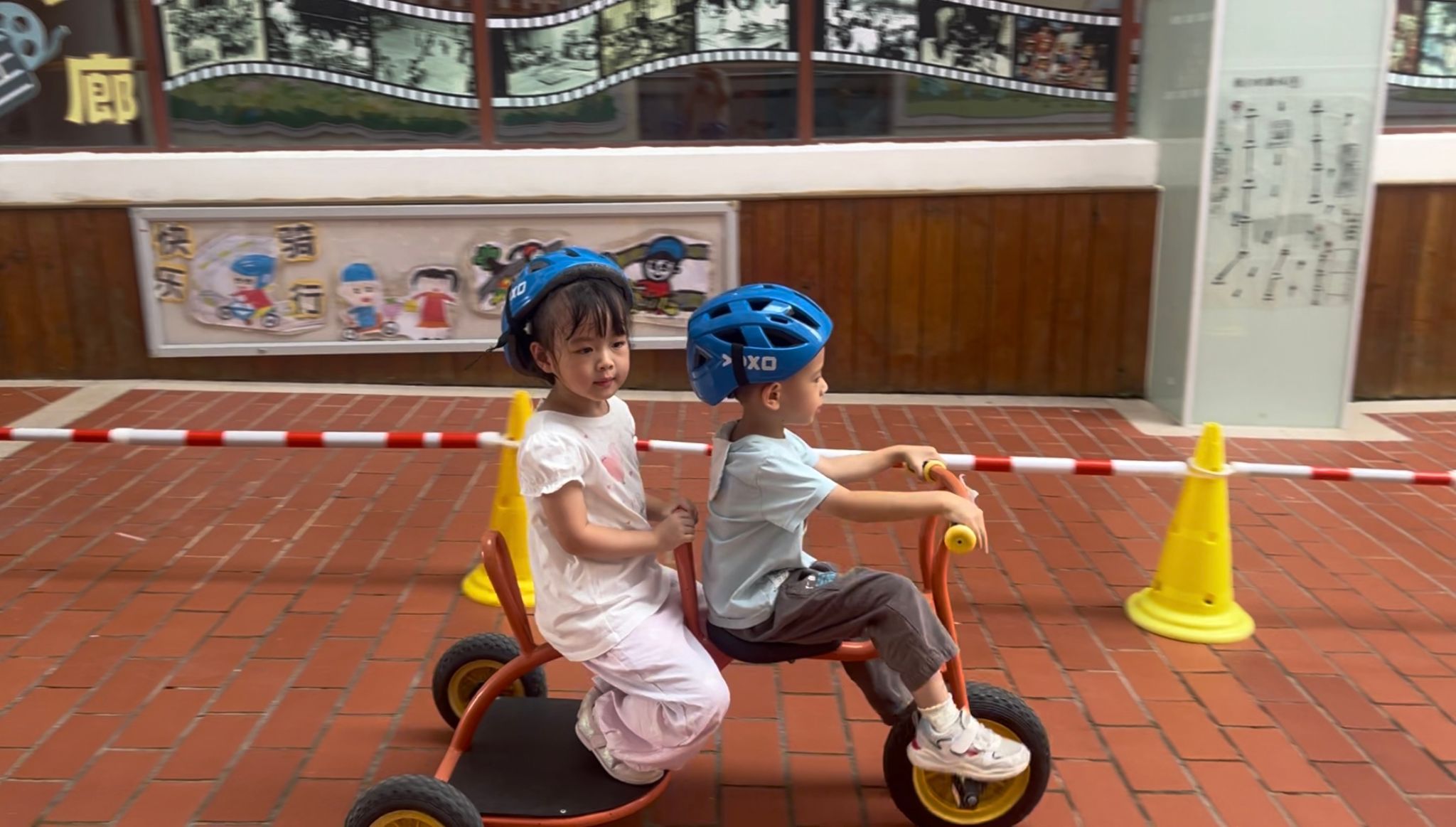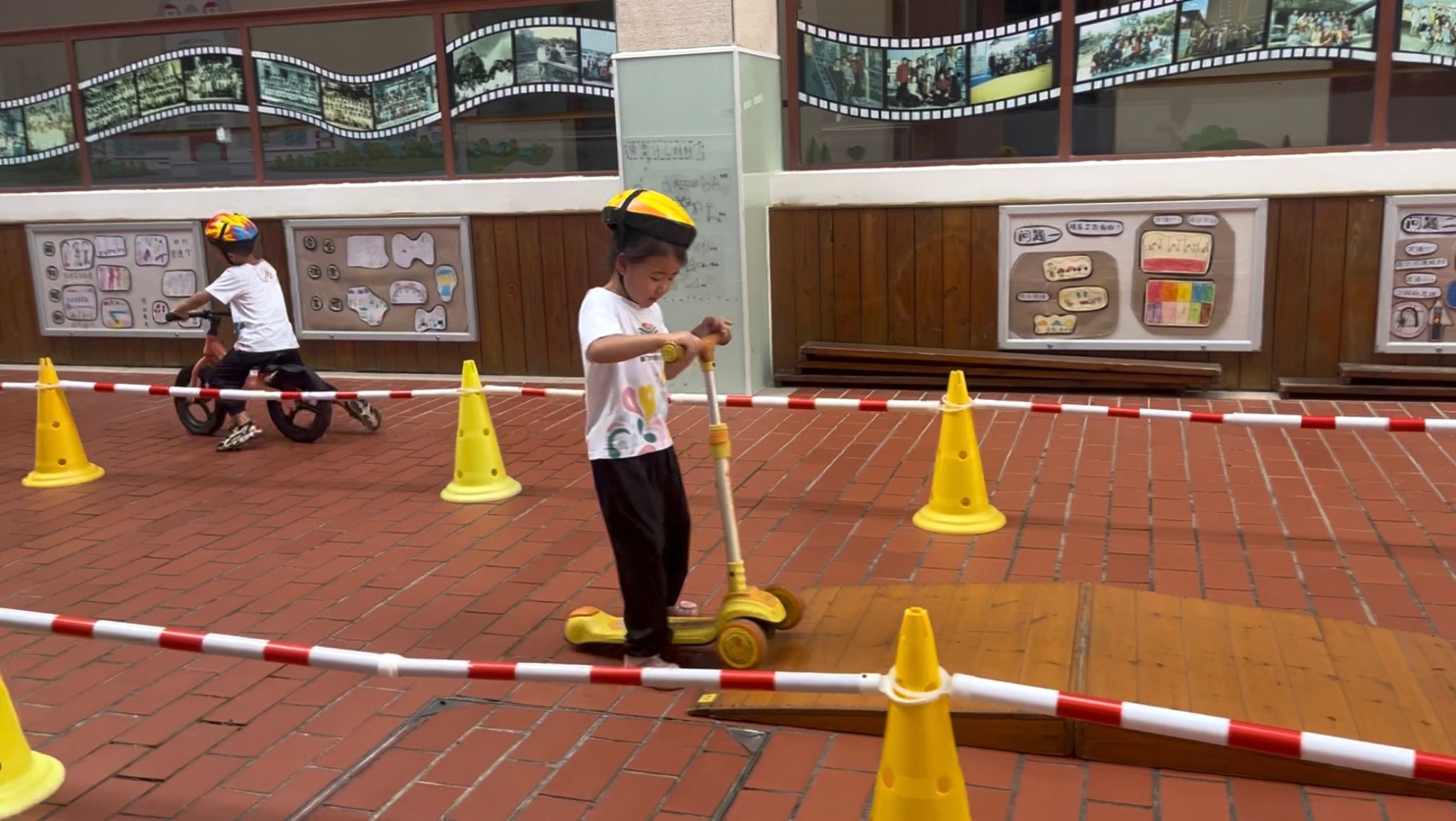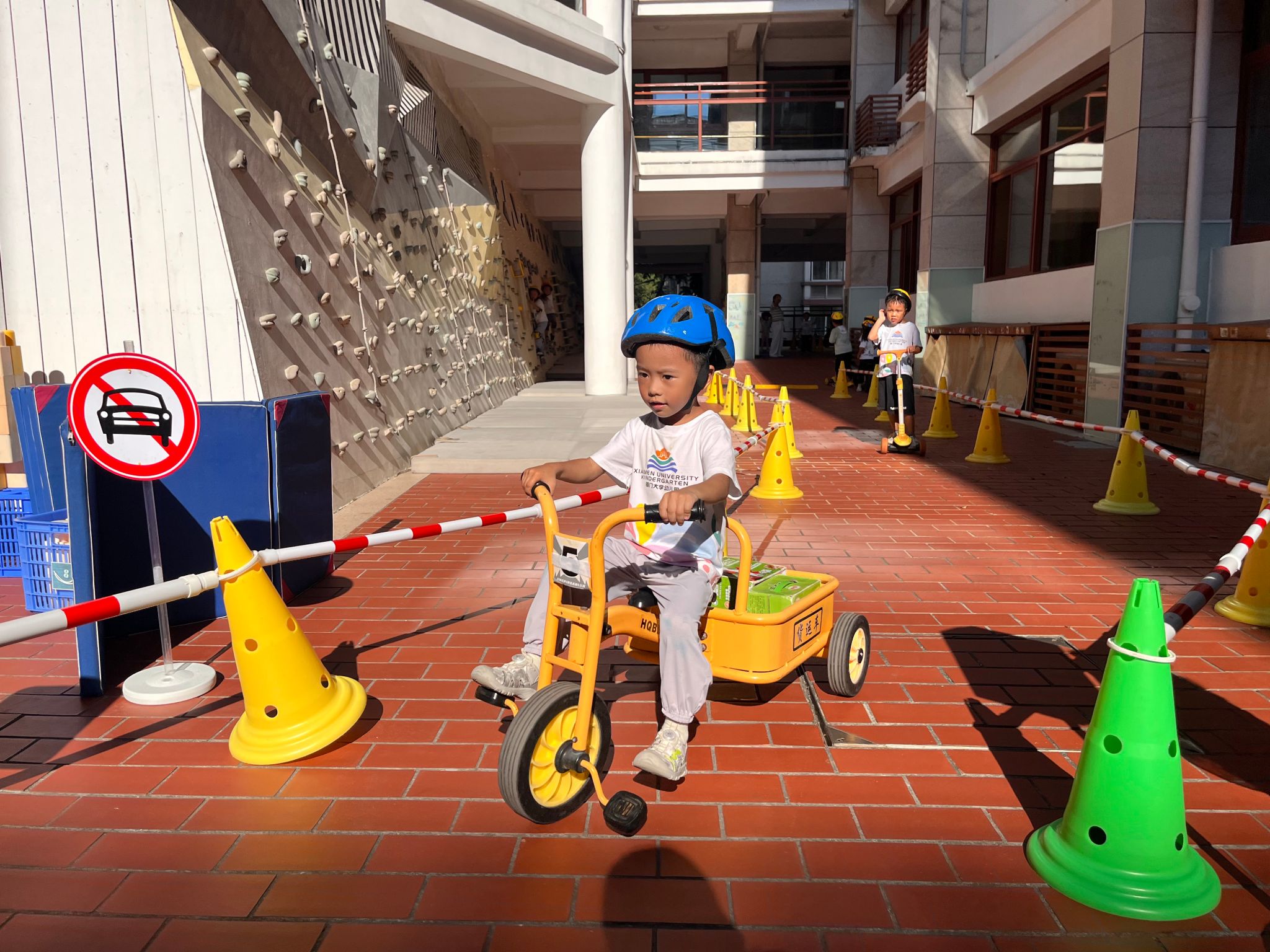 骑行区有好多“新朋友”滑板车、平衡车还有带小货车……看着种类多多的车辆,宝贝们纷纷跃跃欲试,戴上头盔,踏上骑行之旅……