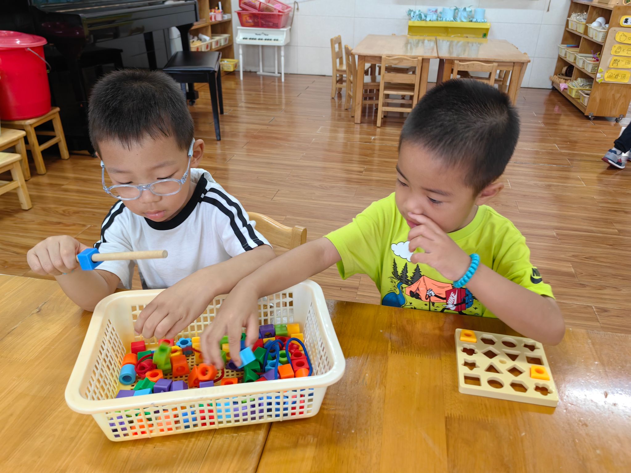 这学期每天入园最让人期待的就是跨班区域活动啦!我们打破了班级的“小围墙”,宝贝们可以像小探险家一样,自由穿梭在不同的班级里。