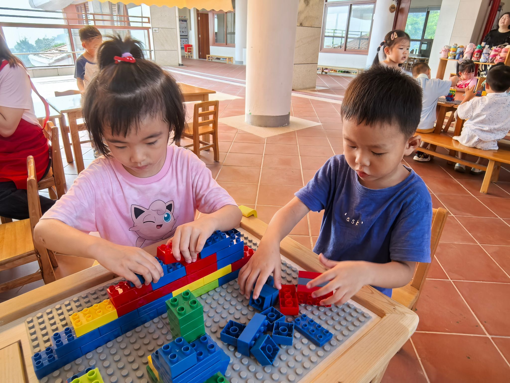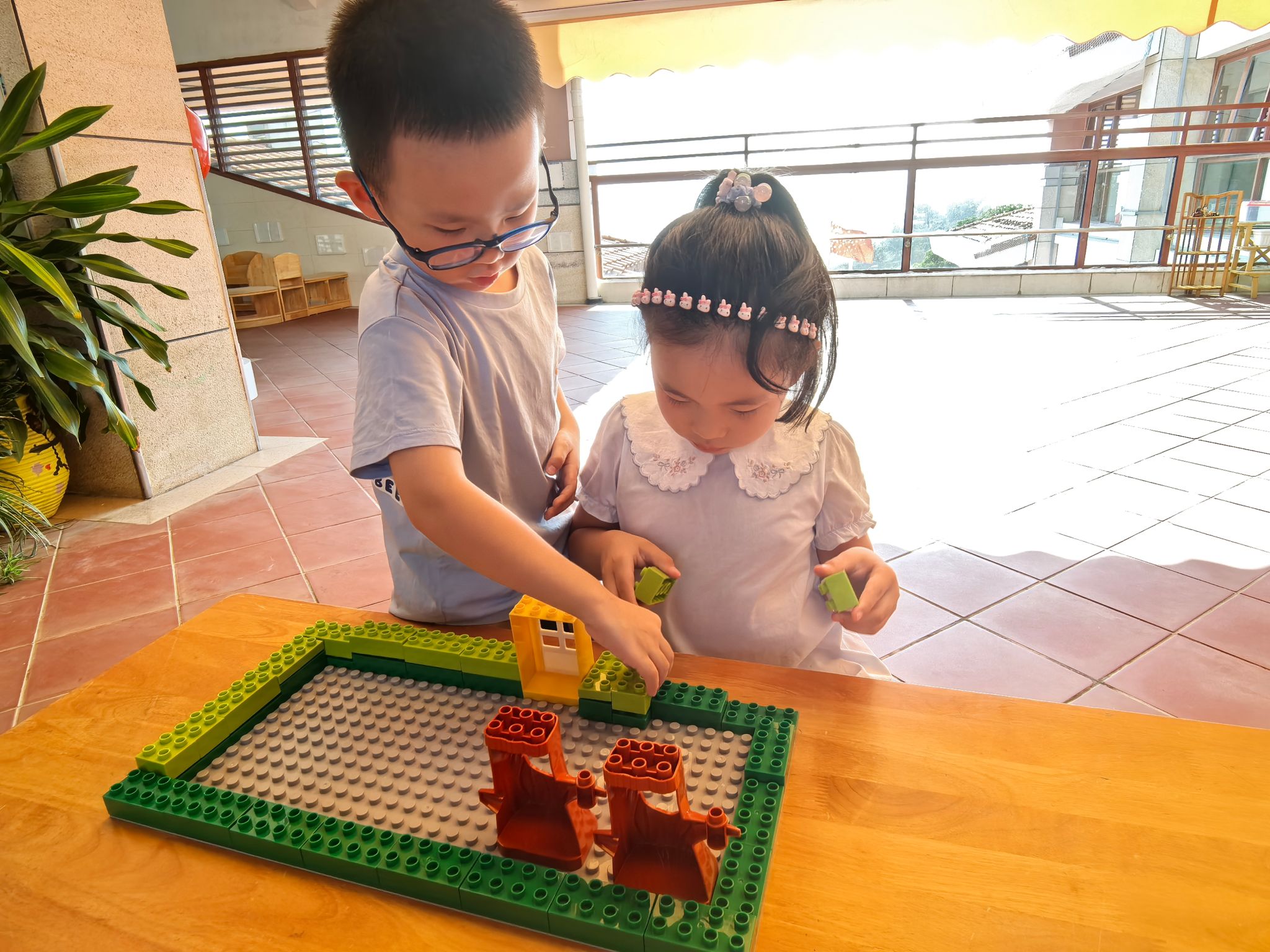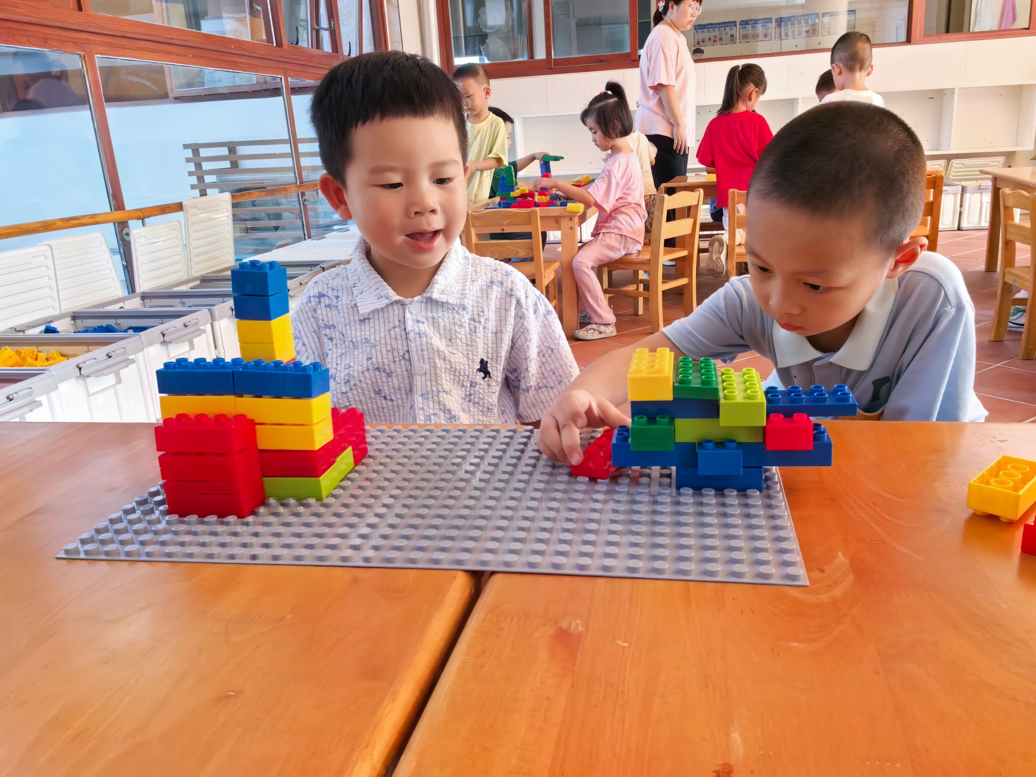 乐高区更是欢乐的小天地。一块块彩色积塑在小手中变身,有的搭出美丽的花园,有的拼出会跑的汽车,还有的合作建起了“欢乐园”。大家你递一块我搭一层,笑声和“哇,好厉害!”的赞叹声此起彼伏。