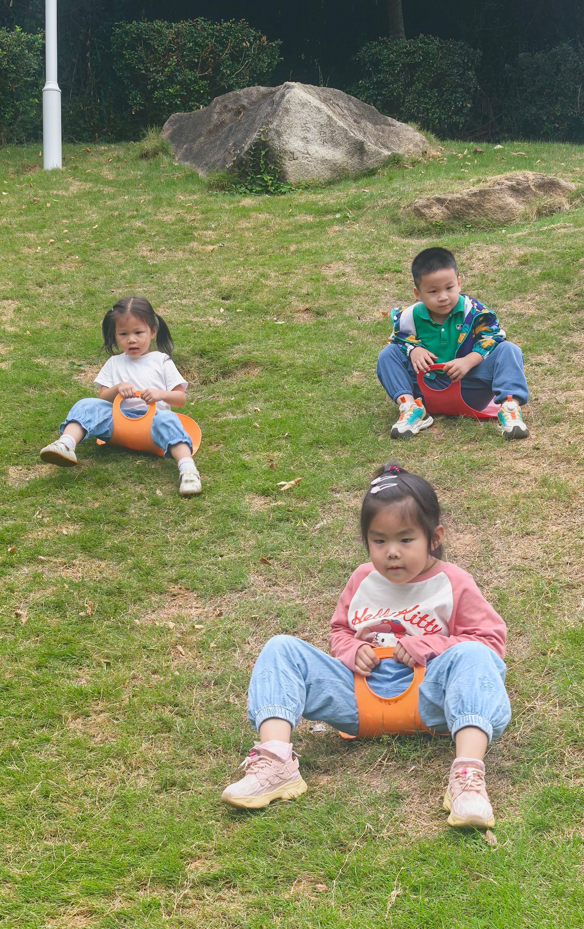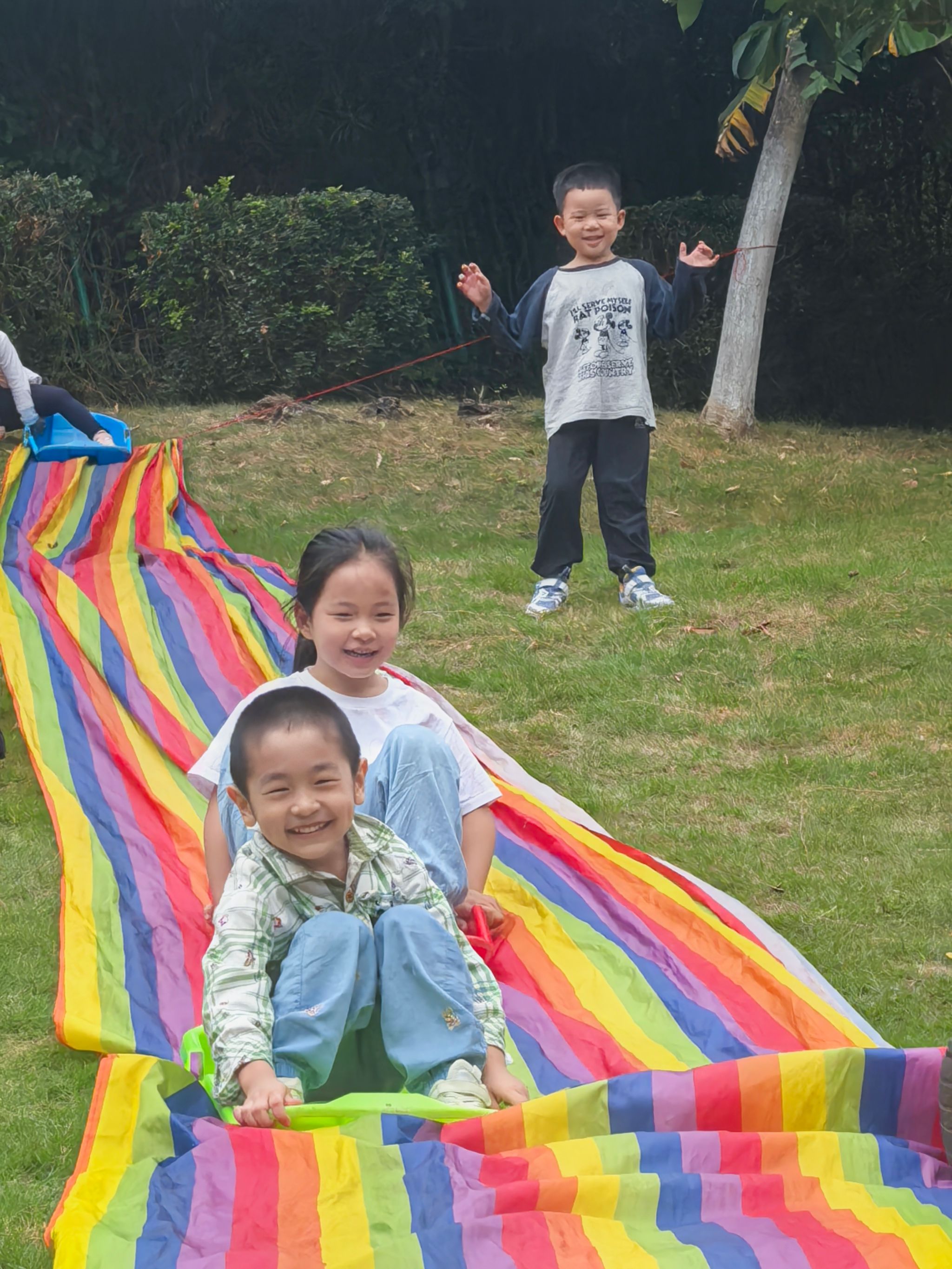 山坡上的时光最是难忘!我们像小松鼠一样爬上矮矮的小树,树叶在耳边沙沙响,好像在说“加油呀,勇敢的小探险家!”滑草的时候更刺激,坐在草垫上“嗖”地滑下去,风从脸颊吹过,笑声在山坡上飘得好远好远。