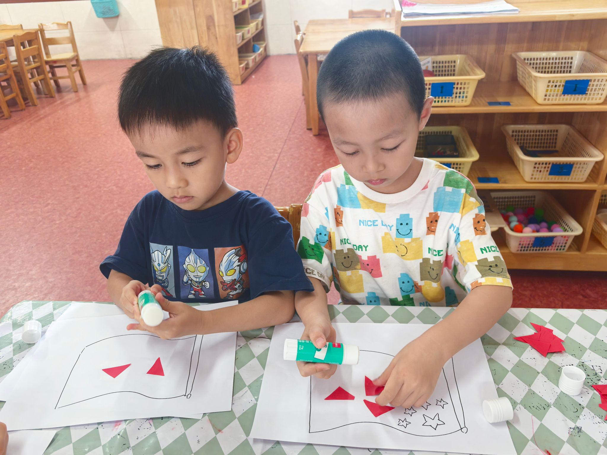 画笔是我们的魔法棒。小朋友们在教室里通过自己的小手把小树苗涂成绿油油的模样,给国旗黏贴上鲜艳的衣裳。每一幅画里都藏着天马行空的小秘密。