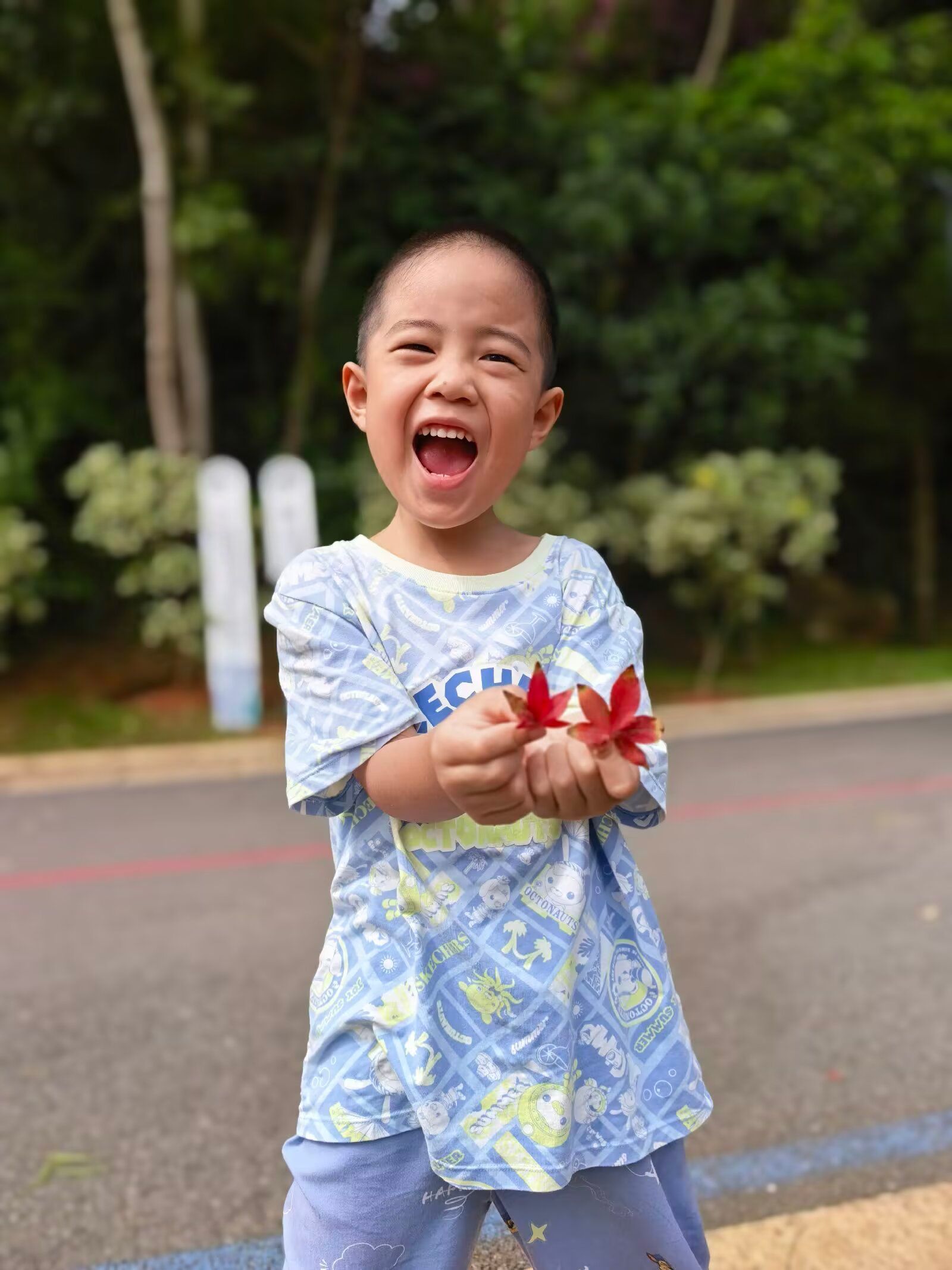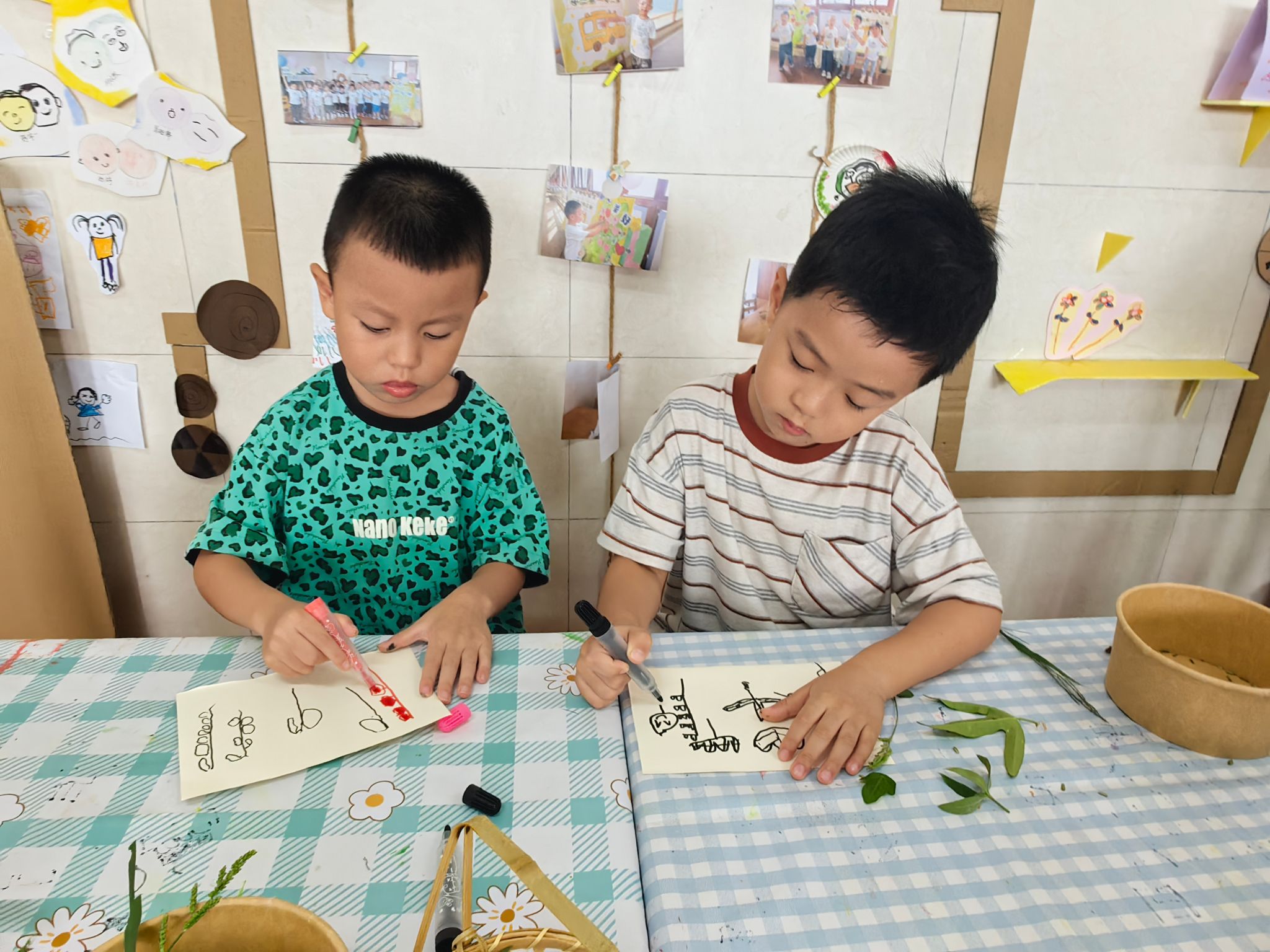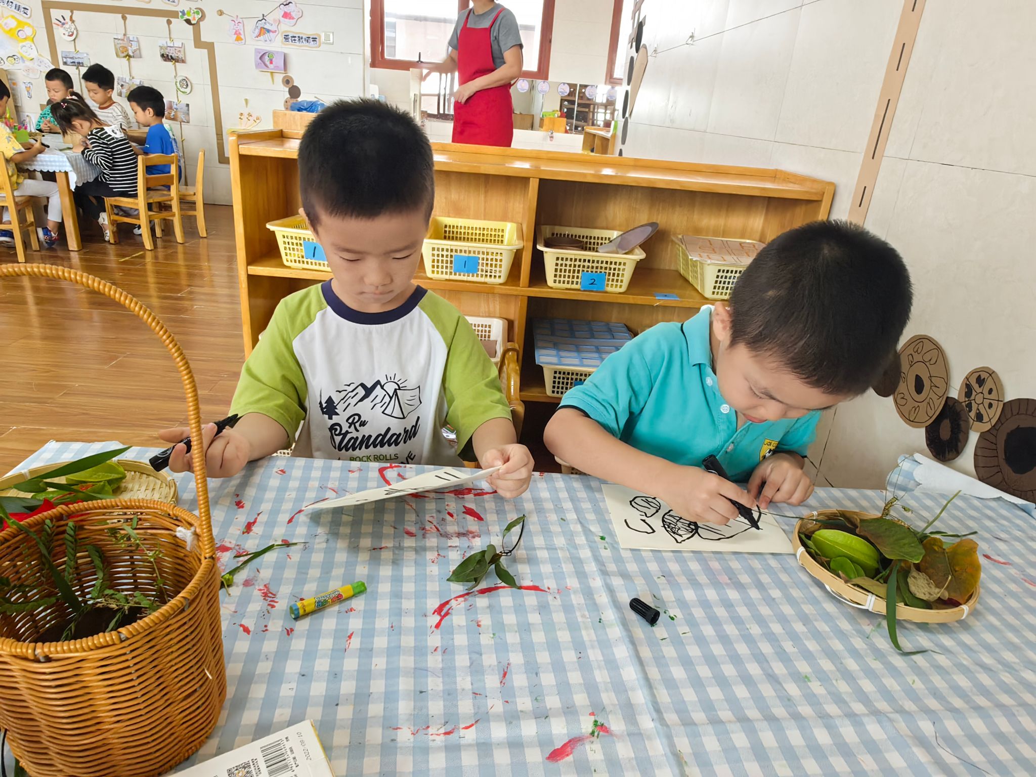 从山坡带回的彩叶、红花、杨桃叶,还成了萌娃们的“模特”。他们化身“小画家”,用画笔把对叶子的惊喜定格在纸上。