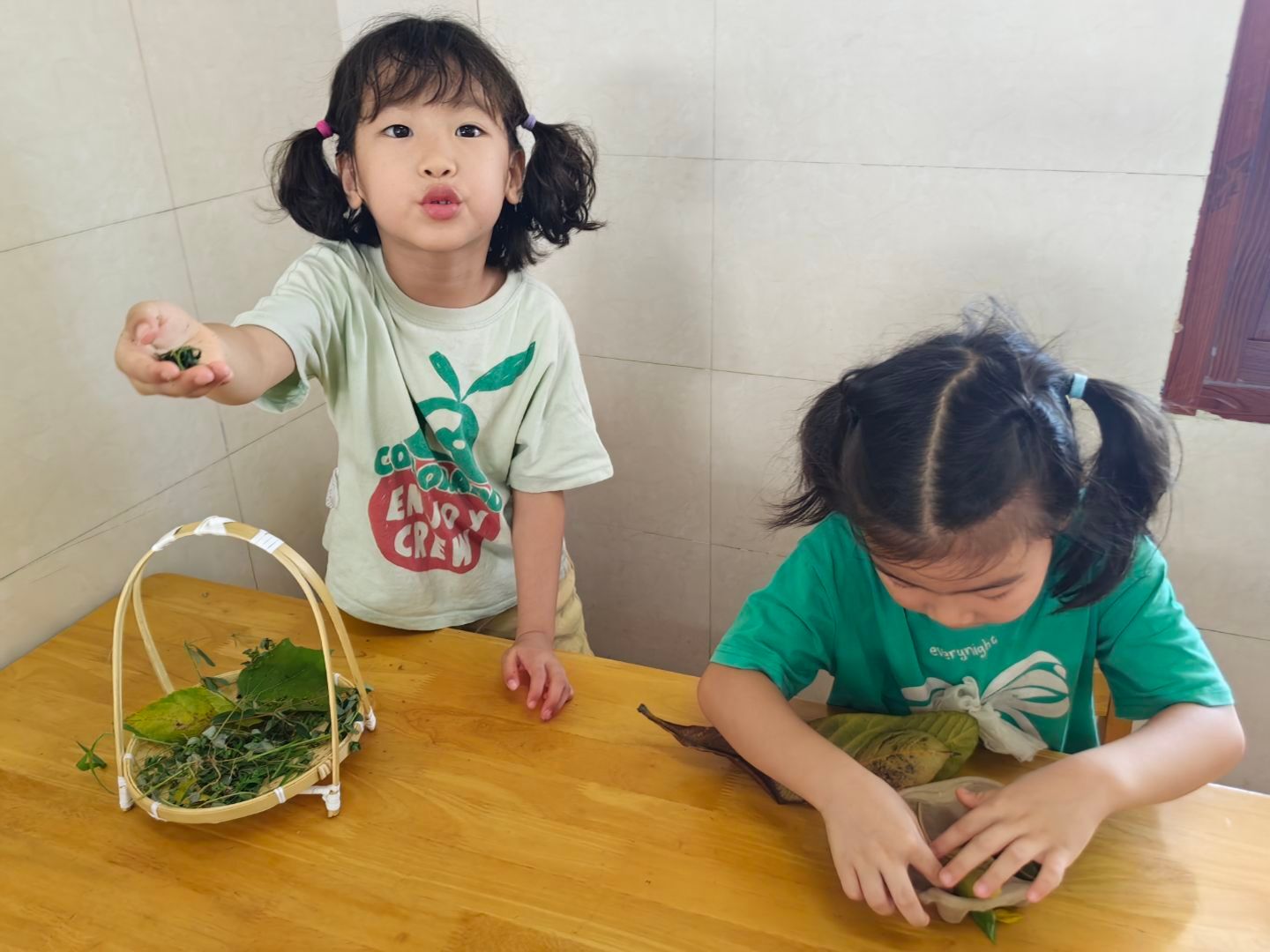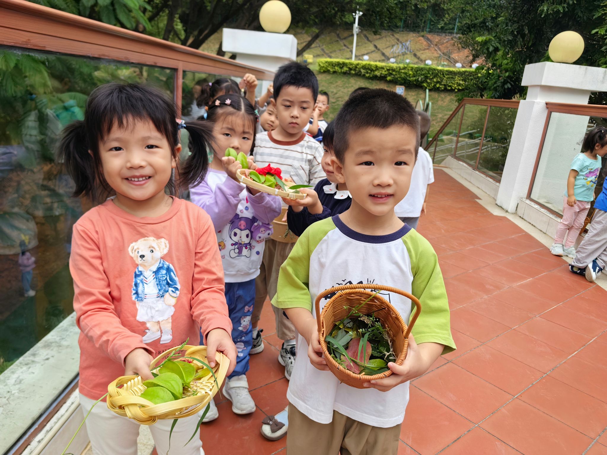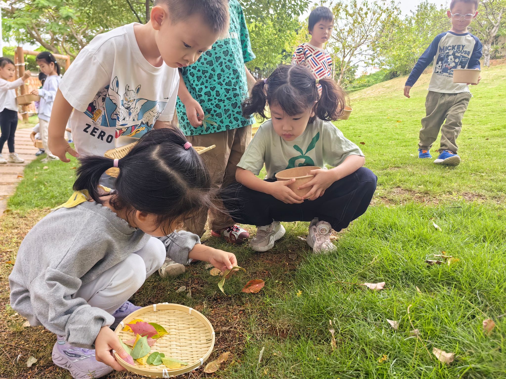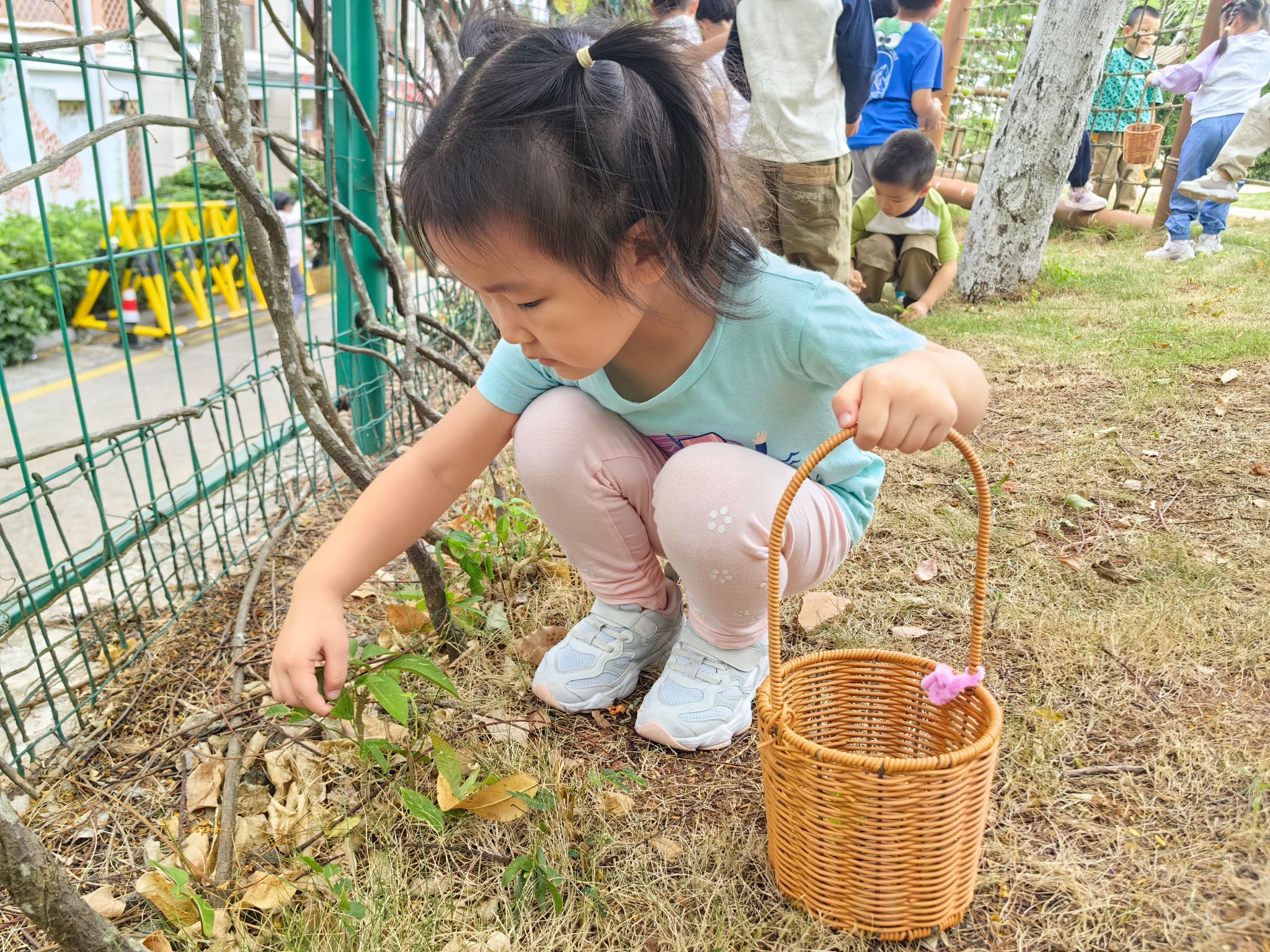 他们小心翼翼地将这些“宝藏植物”放进竹篮、蛋托,不一会儿,容器里就装满了形状、颜色各异的花叶,每一片都藏着他们对自然的好奇。