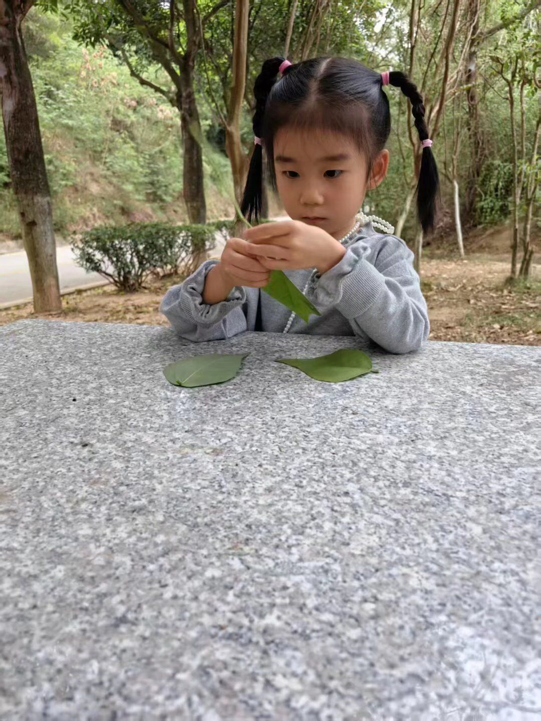 “老师老师!这片叶子一半绿一半黄,像小蝴蝶的翅膀!”