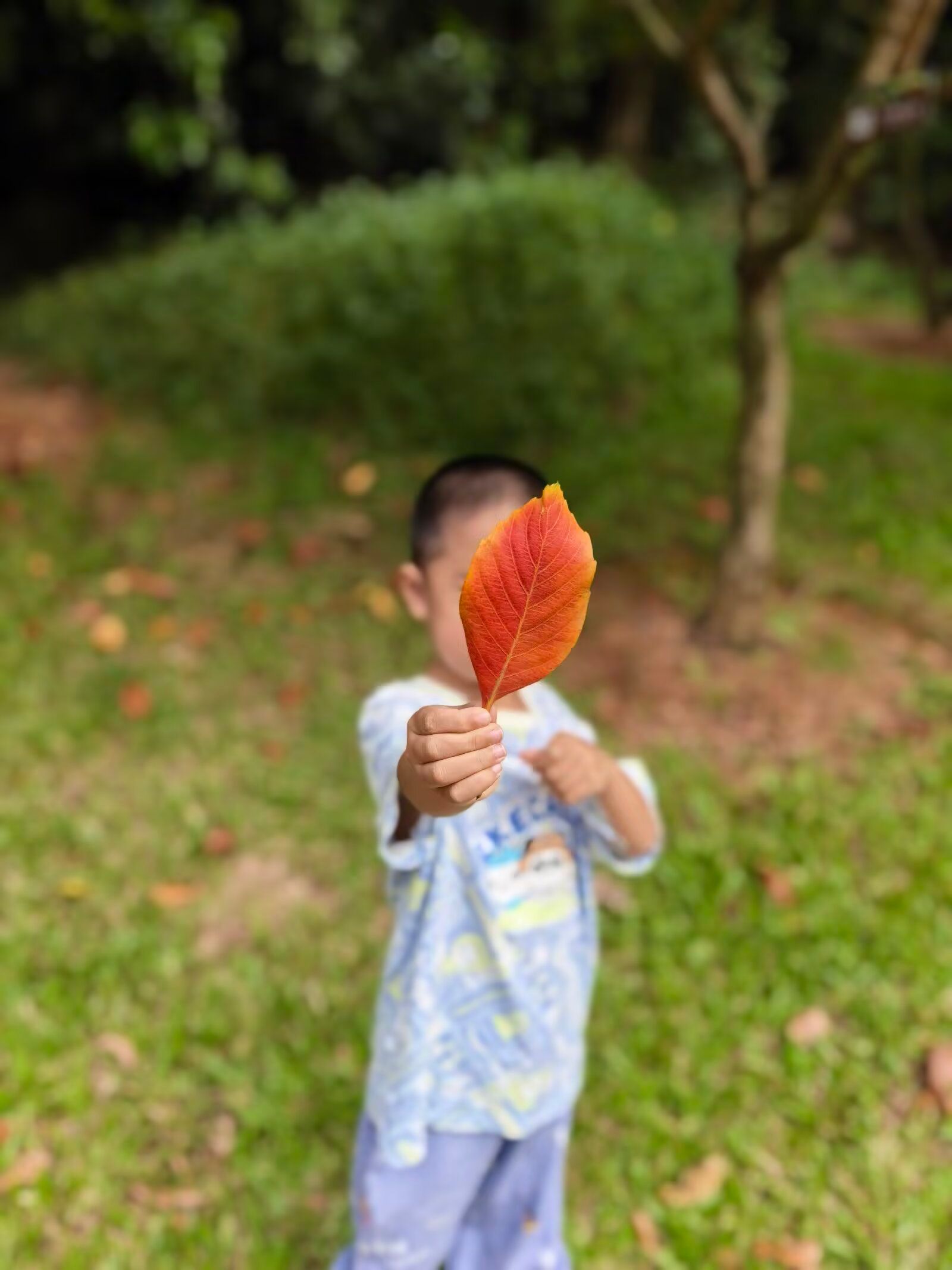 “你看!我在找到的红叶子,妈妈说这是枫叶!”