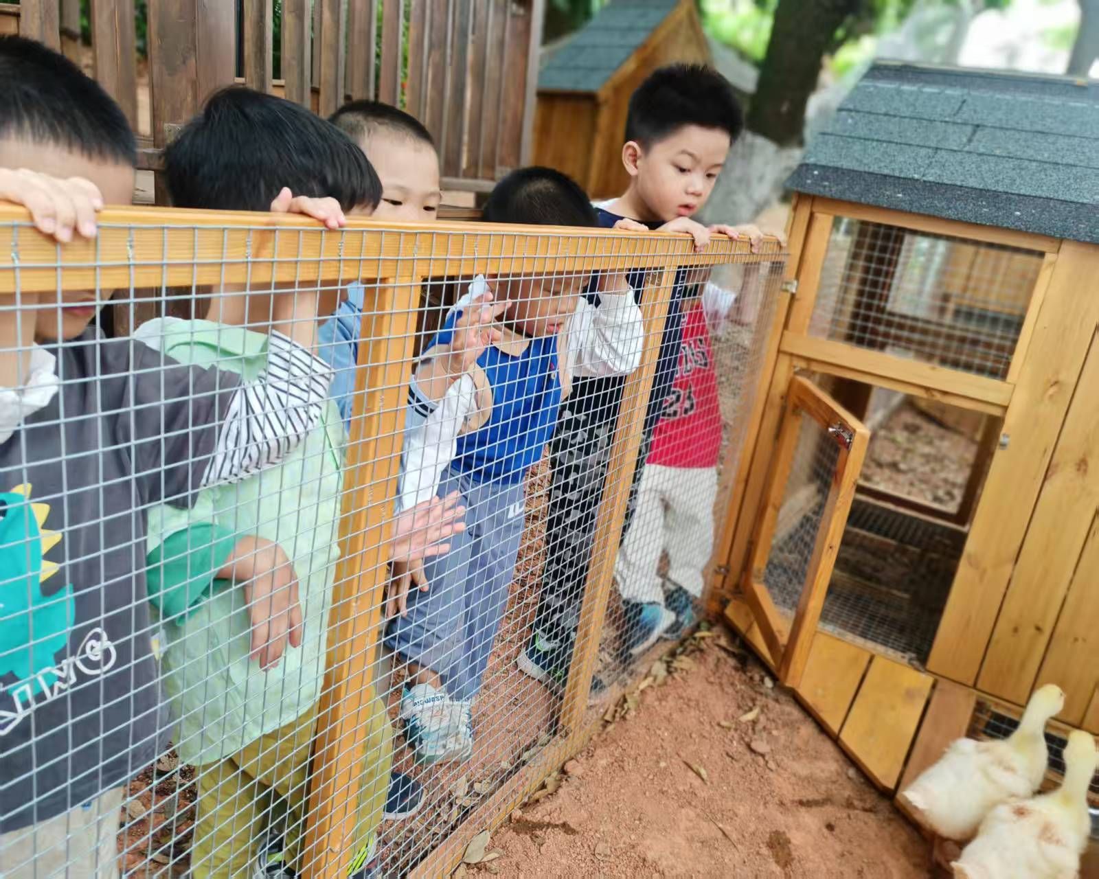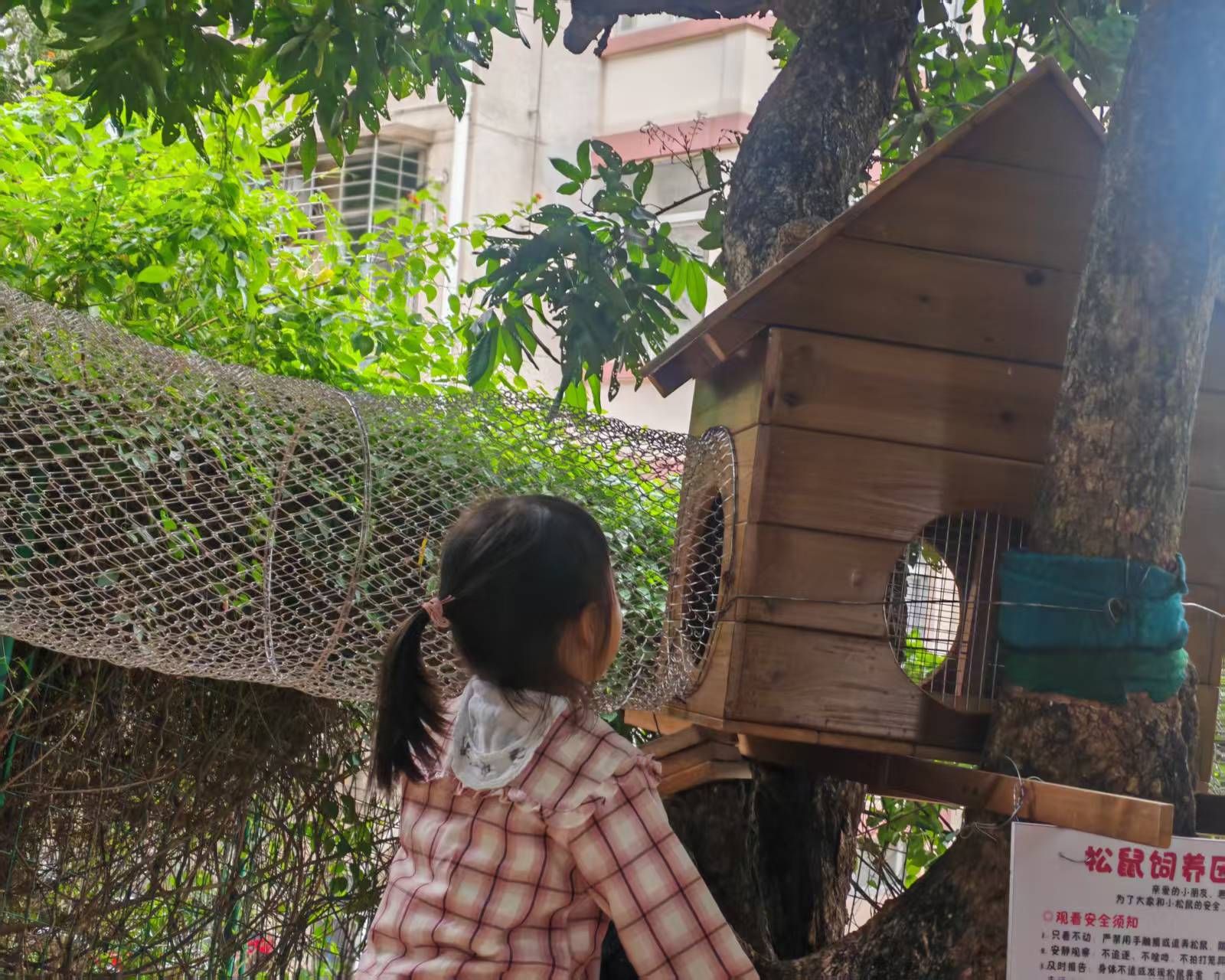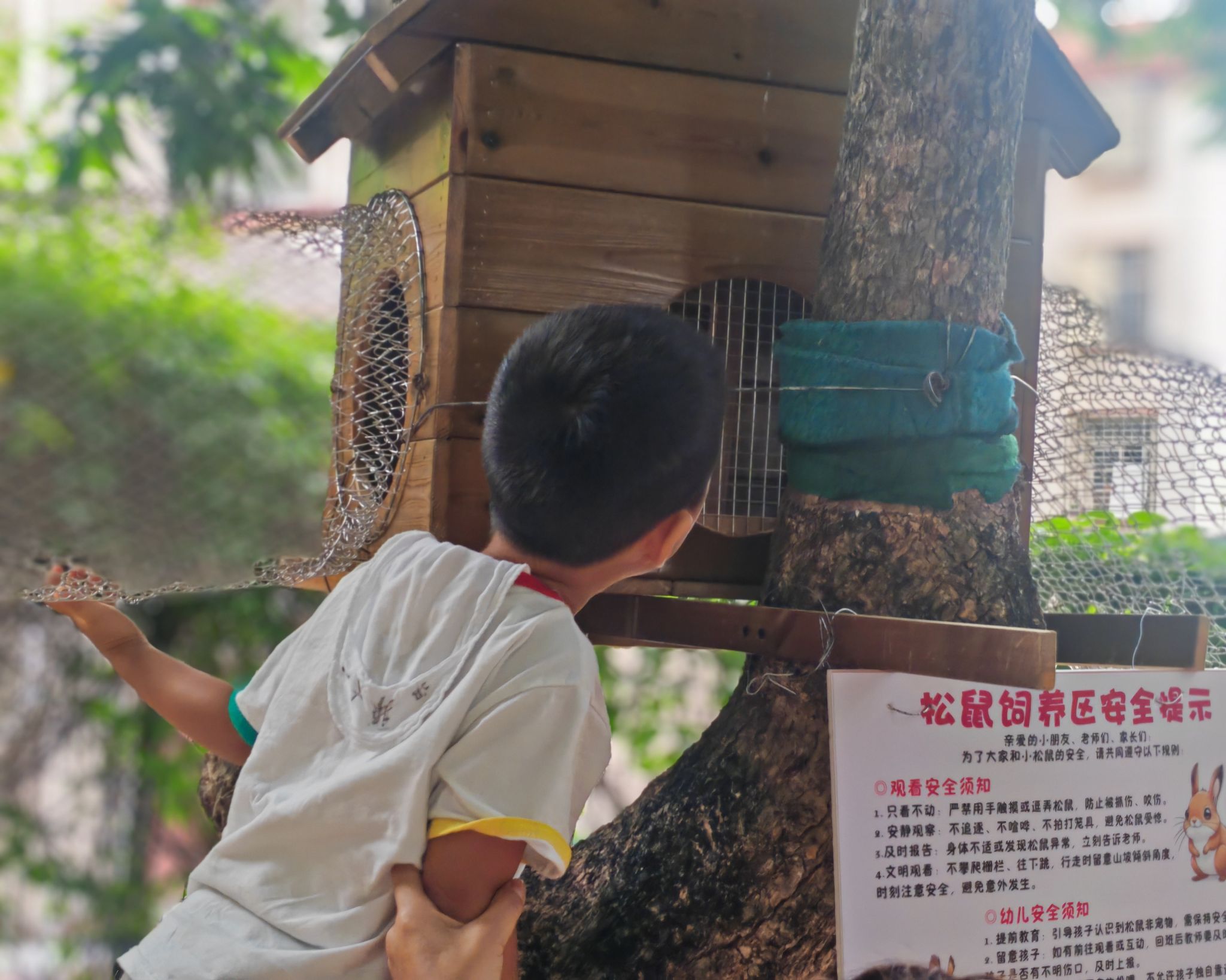 最受欢迎的还要数“萌宠乐园”里的动物朋友,孩子们踮着脚看围栏里大白鹅挺着脖子摇摆走过,看小松鼠在铁笼里窜来窜去。大家轻声和小动物们问好,偶尔发出惊喜的赞叹,这些灵动的身影,让小山坡的快乐又多了几分热闹。