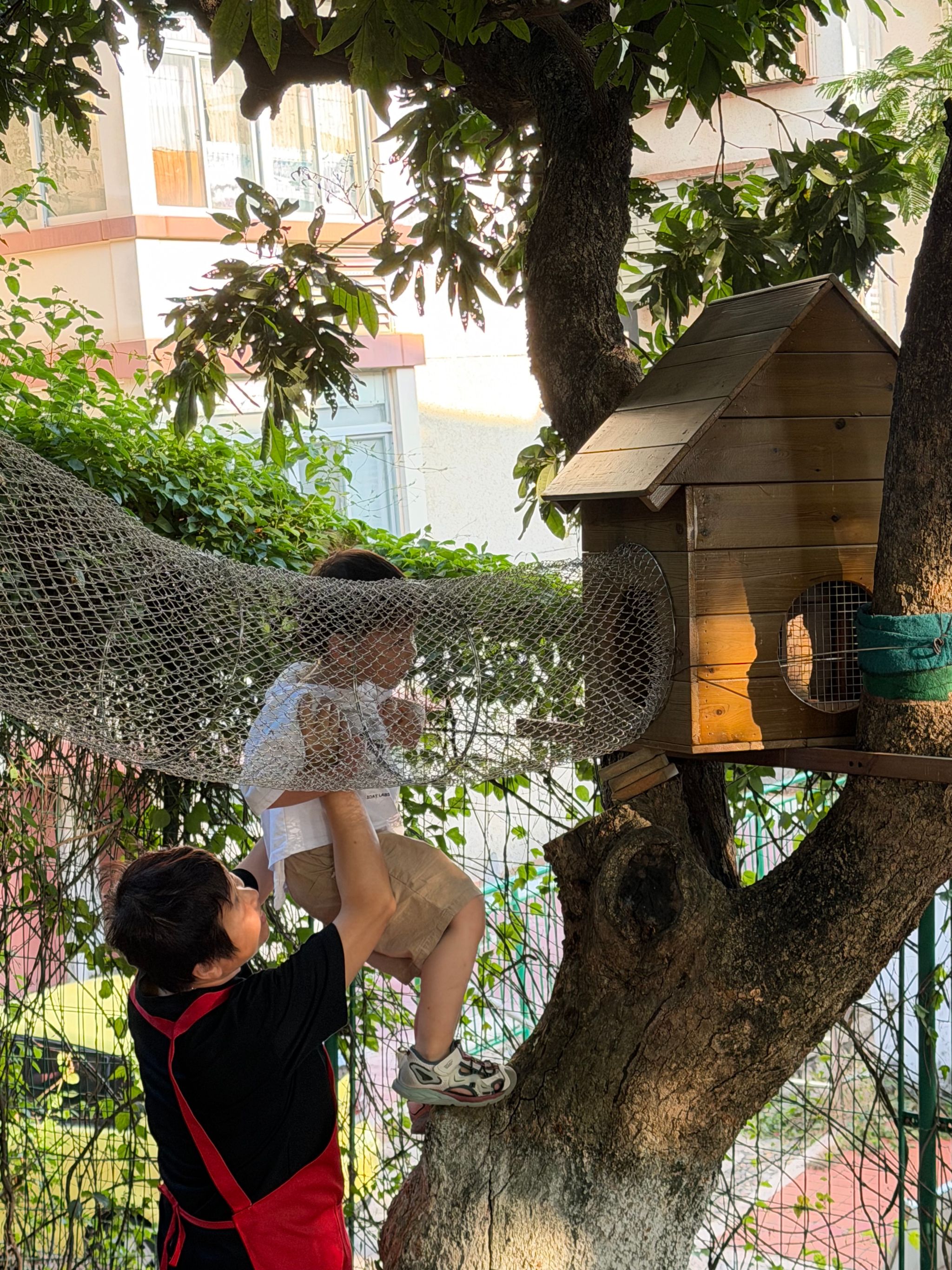 在这里,孩子们化身“小小探险家”,在蜿蜒的迷宫里穿梭,每一次转弯都藏着发现的惊喜,每一次找到出口的瞬间,都响起清脆的欢呼;山坡的小木屋滑、阳光小屋、“鳄鱼荡桥”……玩的不亦乐乎!