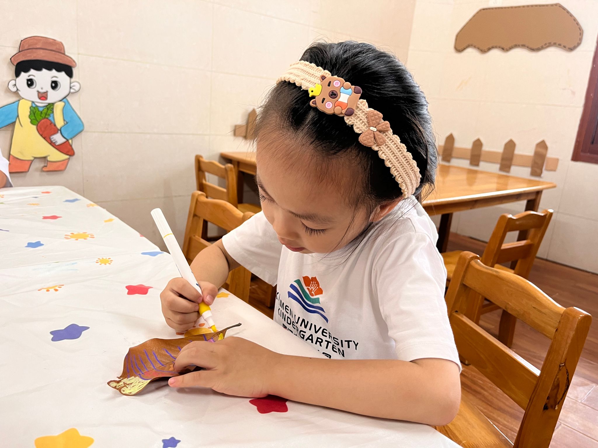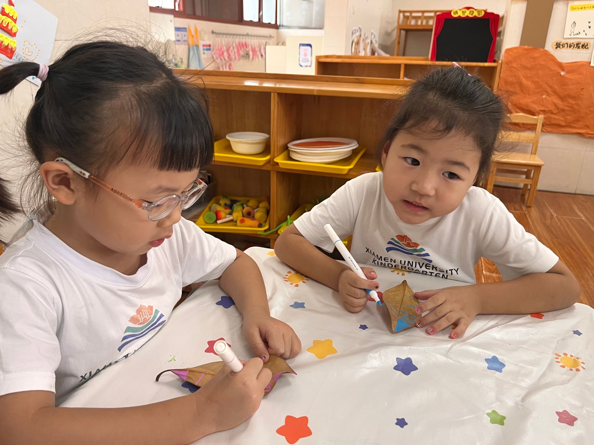 风婆婆踮着脚尖跑过厦园的小山坡,把藏在袖子里的凉意洒了下来。树上的叶子们立刻闹开了,有的举着黄灿灿的小巴掌晃呀晃,有的裹着橙红的小裙子转圈圈,玩够了就“扑通”一声跳下来,像一群调皮的小伞兵。