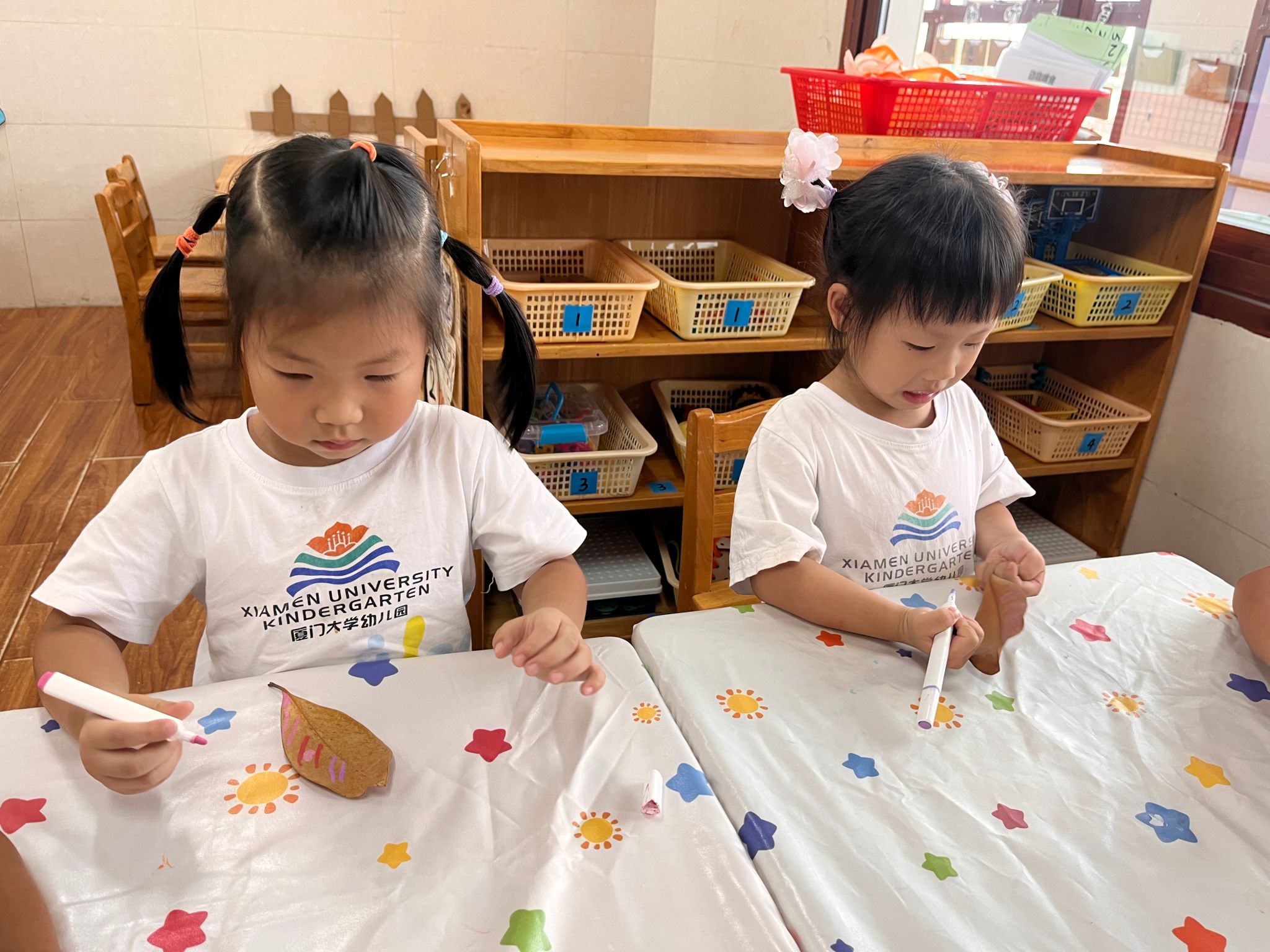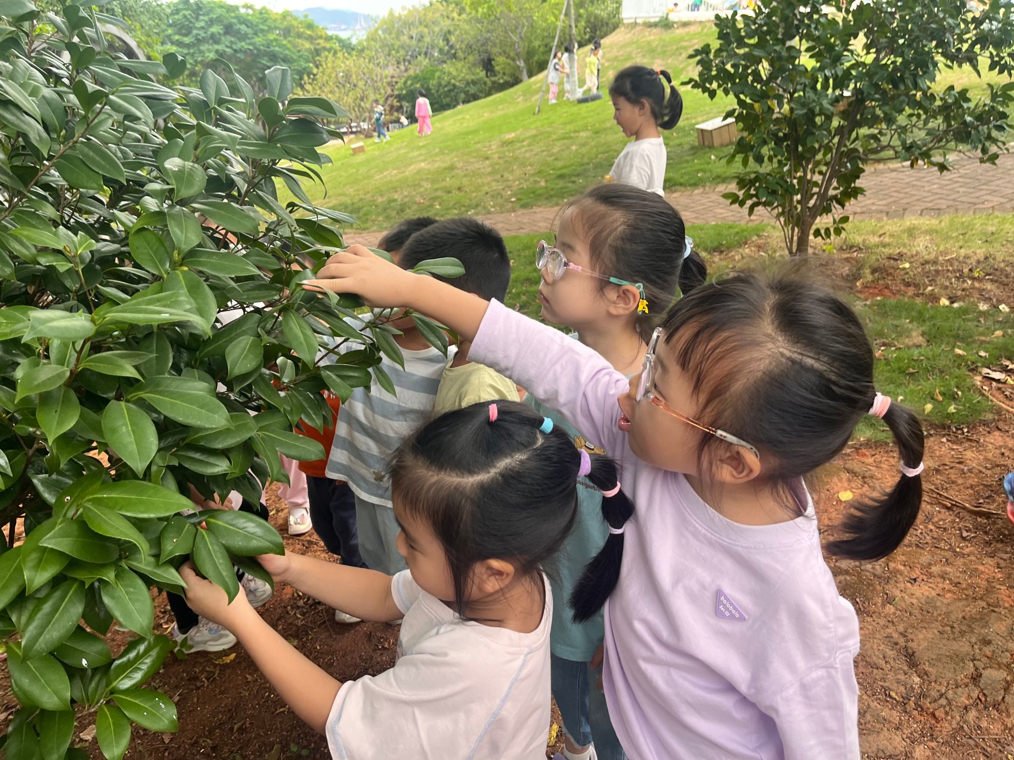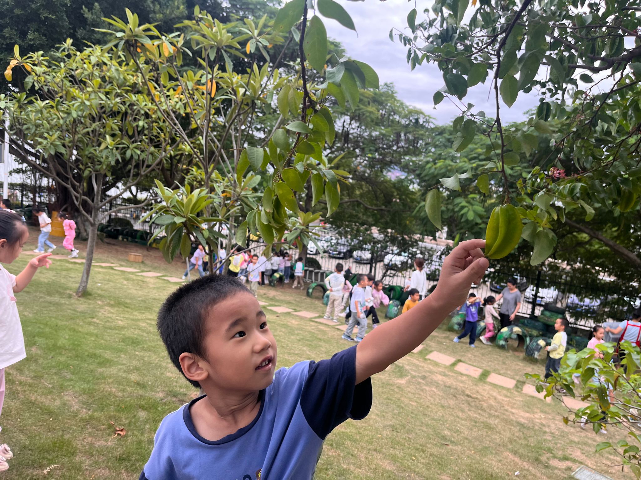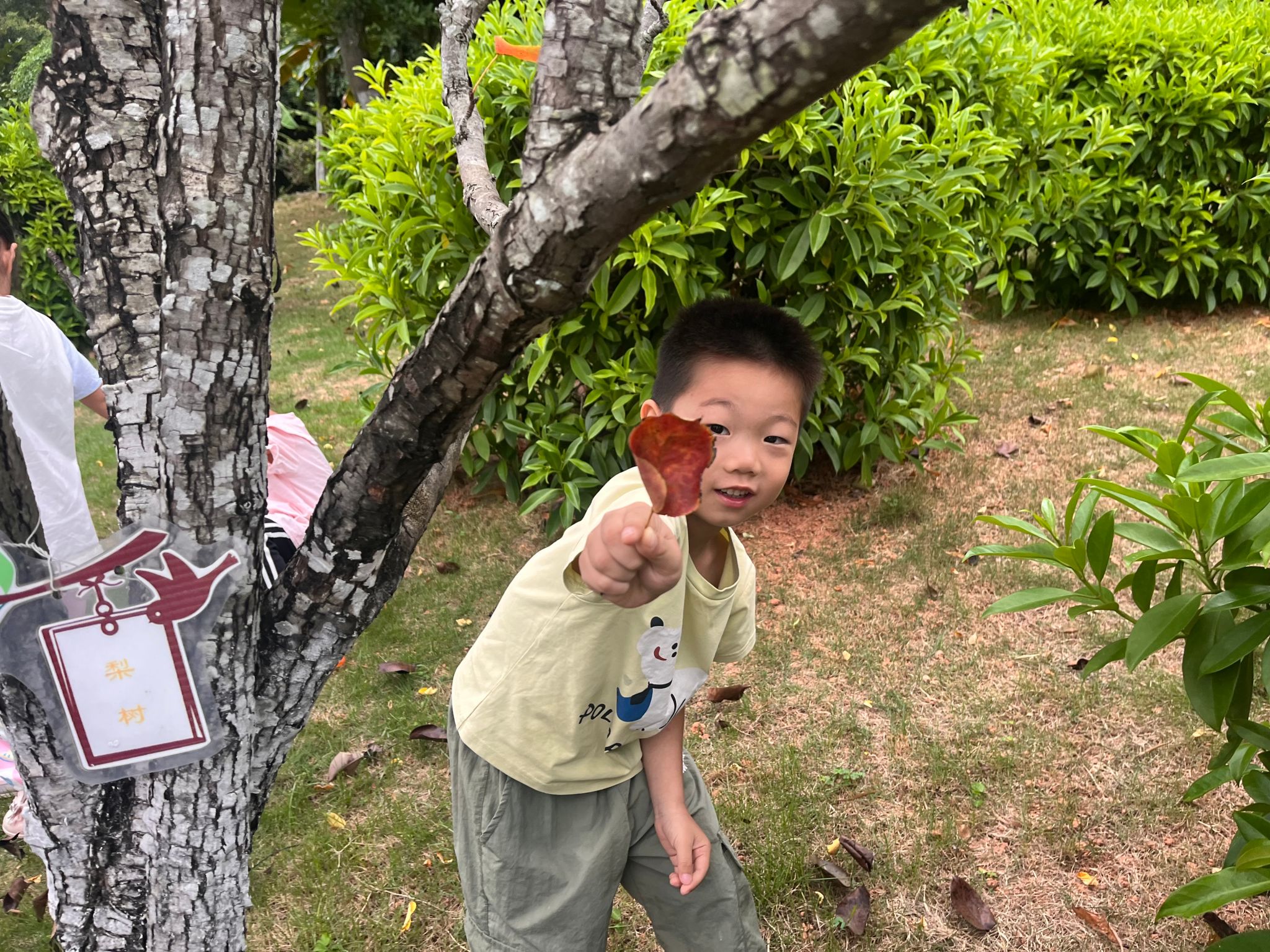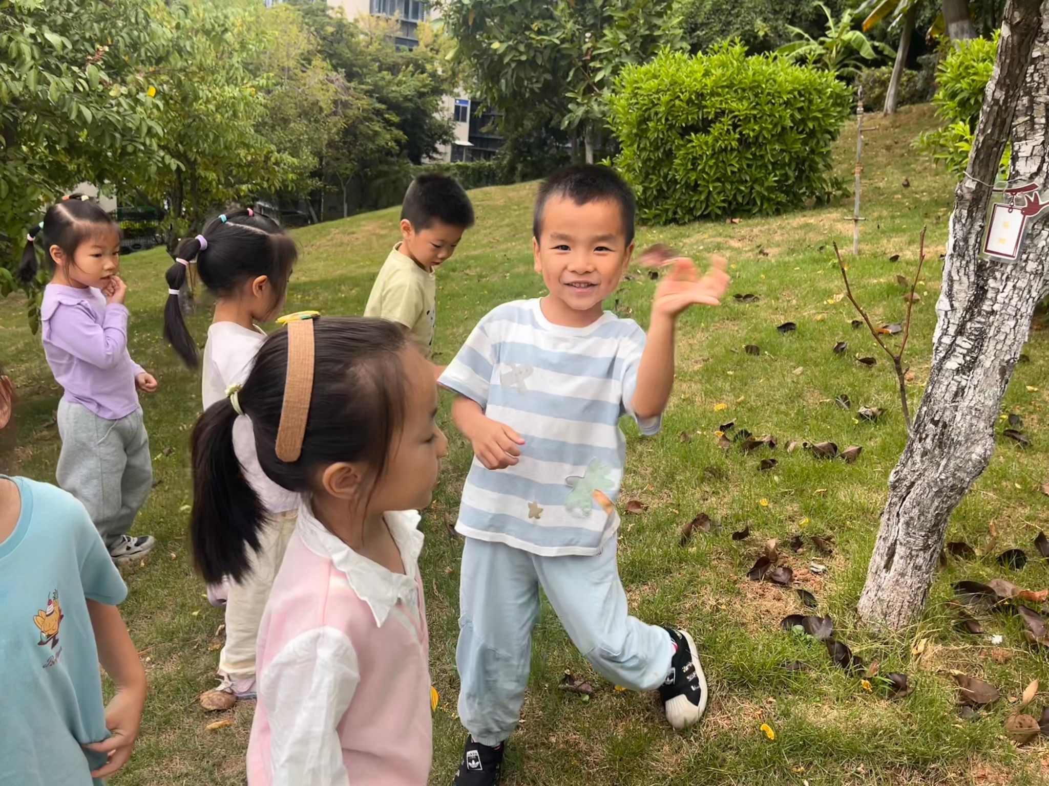 宝贝们看着山坡上落下的小树叶,欢喜地捡起来晃啊晃……我们喜欢和小树叶“交朋友”!