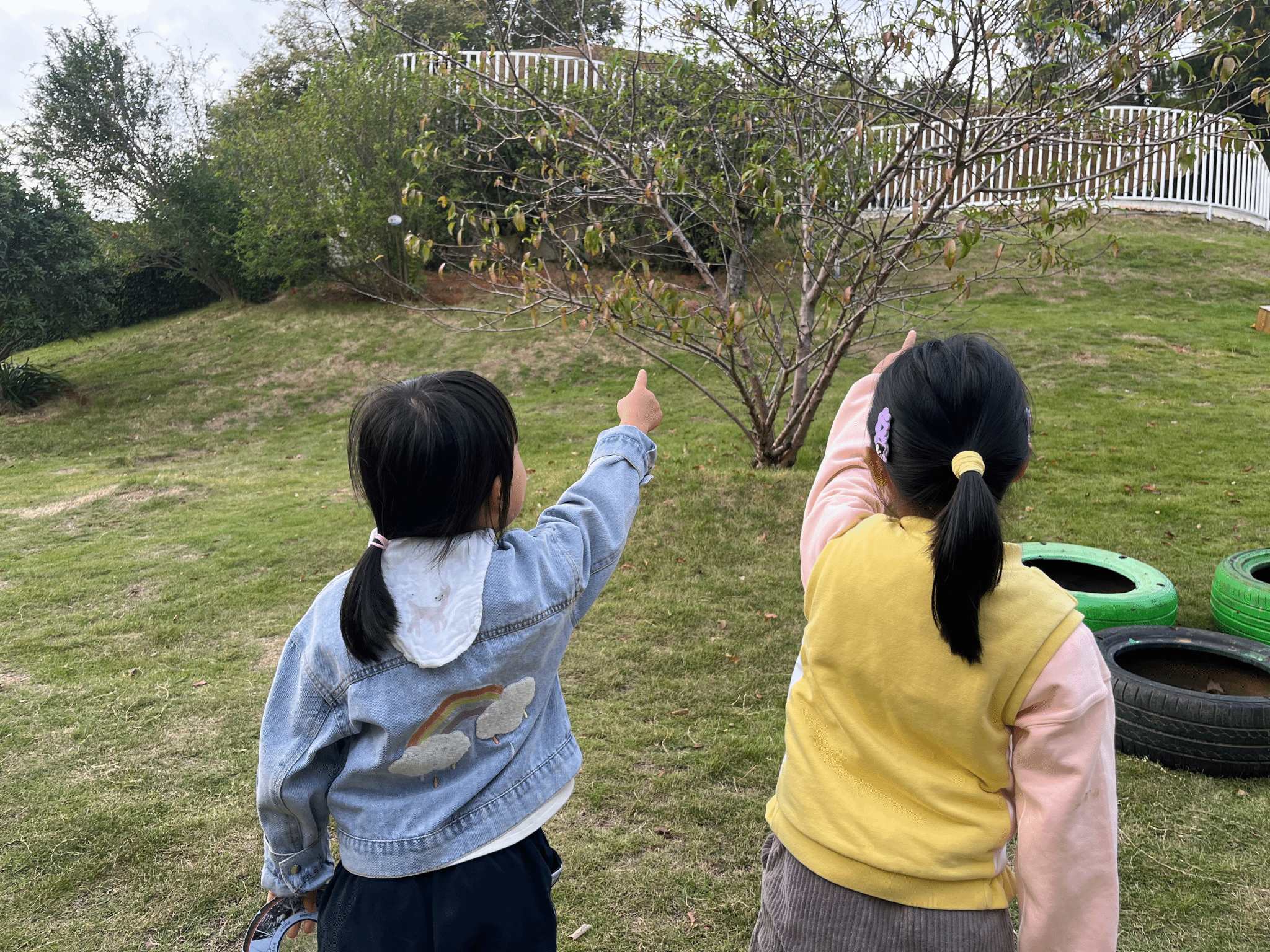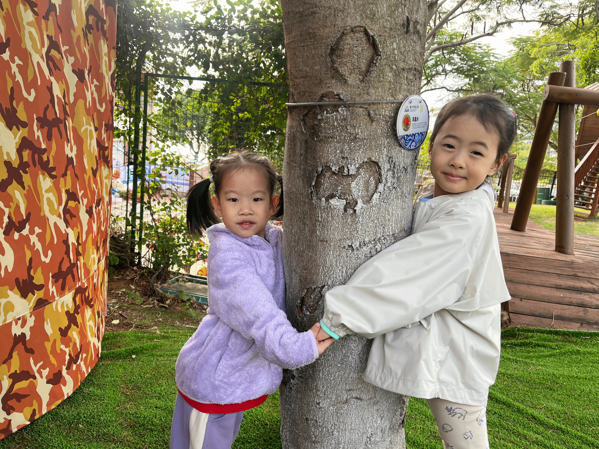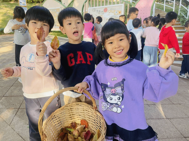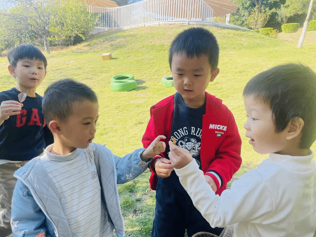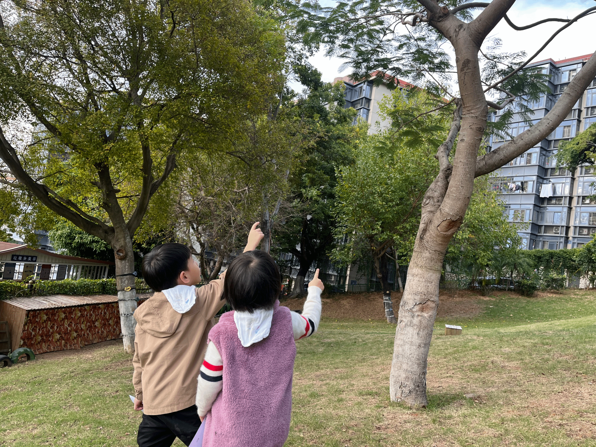秋风婆婆一吹,幼儿园的小山坡就变成了藏满秘密的乐园!中六班的宝贝们排着小队伍,像一群好奇的小松鼠,蹦蹦跳跳去寻找大树朋友啦~ 有的小组拉着小手,认真讨论 “数树计划”:“我们要从坡下数到坡上!”“不能数重复呀!”;有的宝贝喜欢自由探索,指着高高的树喊:“这棵树的叶子像小扇子!”,追着矮矮的桂花树跑:“它的树枝弯弯的,像小滑梯!”,大家你一言我一语,把小山坡的树朋友都认识了个遍。