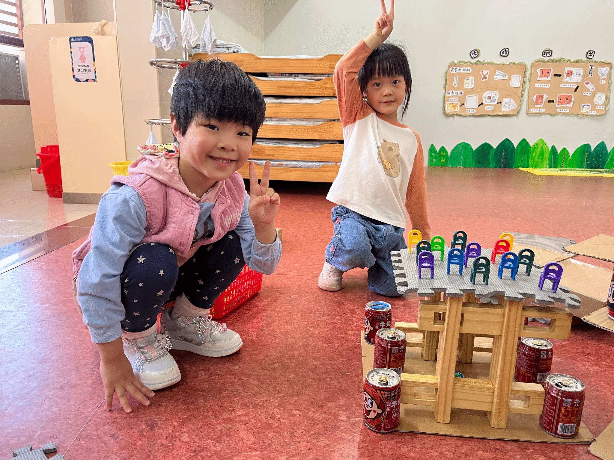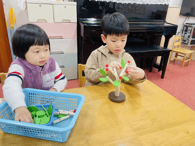 晨间区域时光里,宝贝们开启了“我们的树朋友”主题探索之旅!大家化身小小造林师,两人一组默契协作拼插小树,指尖翻飞间搭建出专属小森林;在色彩配对游戏中精准寻找对应颜色的树木模型,在数量投放挑战里认真清点、有序摆放。孩子们沉浸在趣味互动中,时而小声讨论,时而分享发现,在玩中学、学中乐,尽情感受与树朋友相伴的快乐~建构区里,亲子合作的树屋别提多可爱啦,宝贝们用积木搭建属于自己的小屋,你搭底座我铺屋顶,玩得不亦乐乎,整个建构区都变成了热闹的森林小屋!