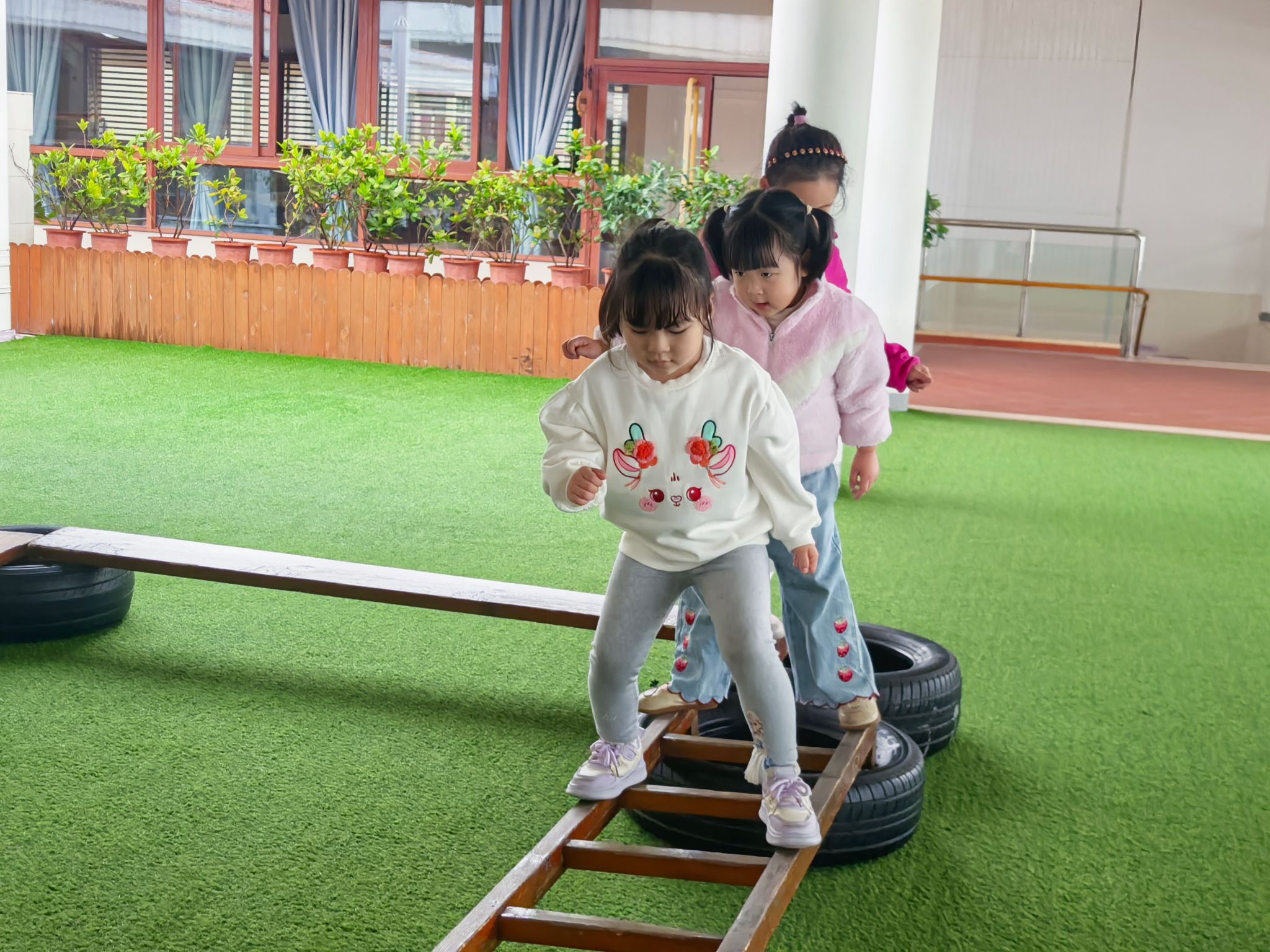 活动正式开始前,老师细致讲解安全规则:攀爬梯子要抓稳扶手、过独木桥时不推挤同伴、钻轮胎时注意低头避让。孩子们听得格外认真,安全意识悄悄扎根心间。
