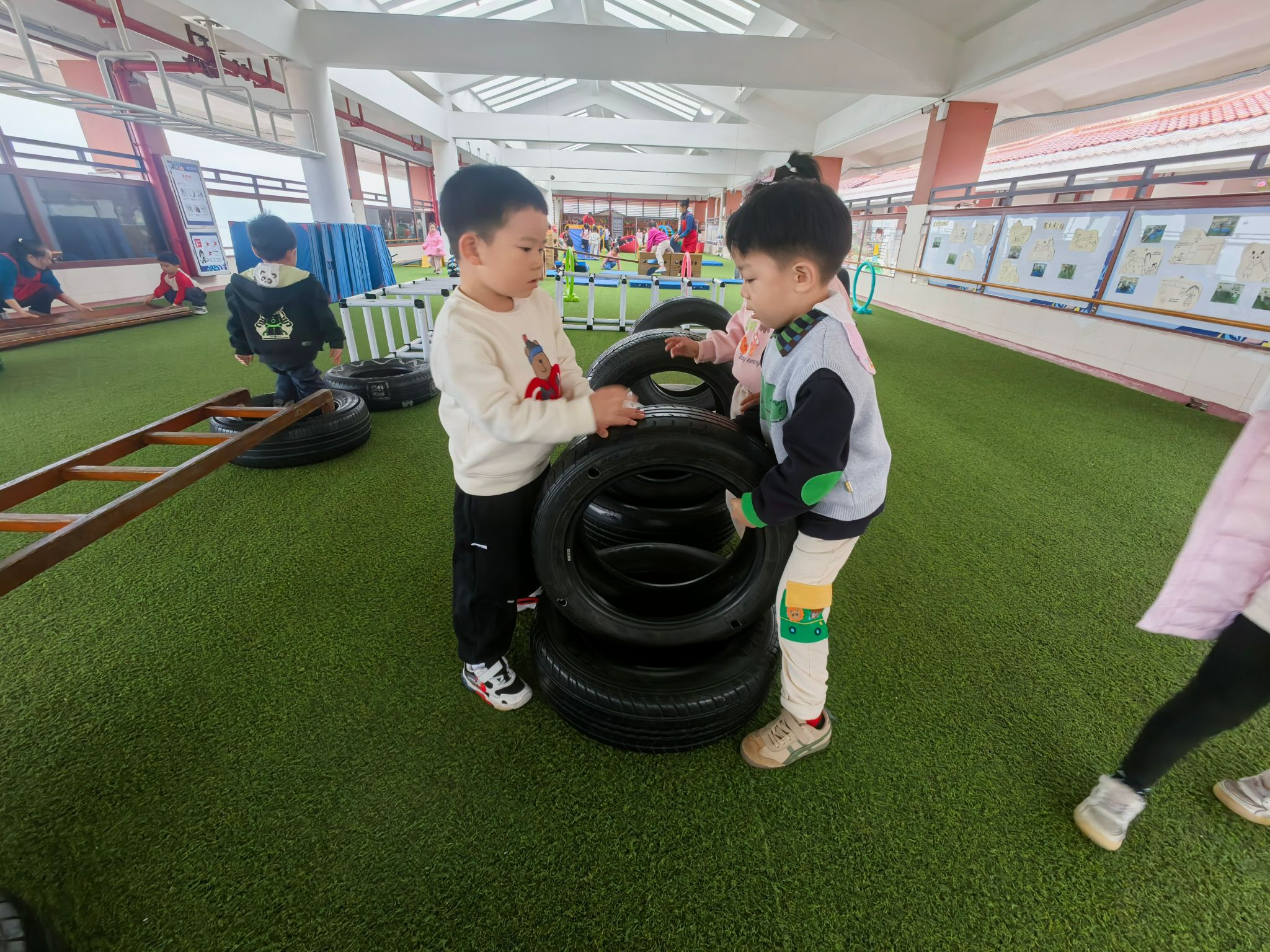 计划落地,小小行动派们立刻分工合作。有的弯腰搬轮胎,有的合力抬梯子,还有的细心整理辅助材料,自主合作的模样格外亮眼。材料就位,天台秒变“探险乐园”。