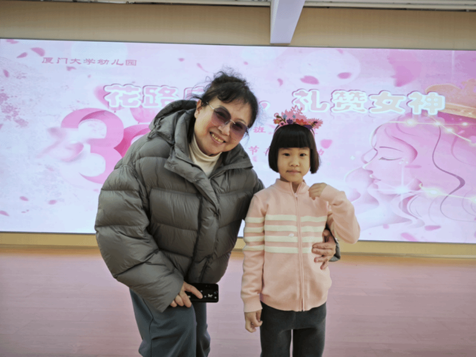活动当天,为了迎接女神们的到来,宝贝们早早站在舞台上演唱着《萱草花》。他们稚嫩的歌声中充满了对妈妈、奶奶的爱,台下的家长们都被深深感动,眼里闪着泪光。