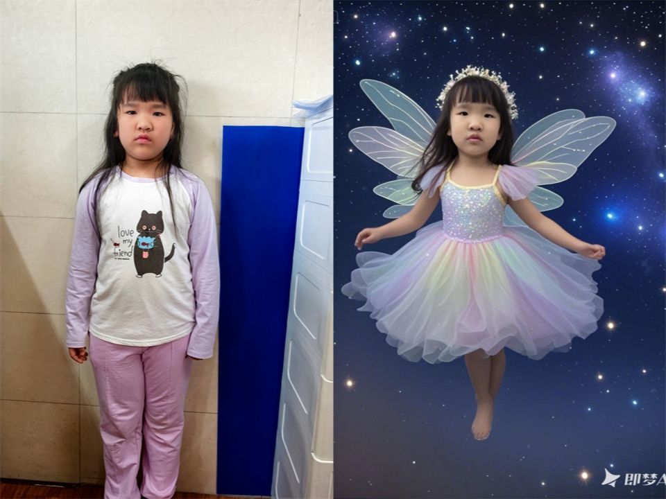 宝贝们还发现在即梦AI软件中,只要把自己的想法告诉它,它就可以让照片中的人物变成各种各样有趣的样子。瞧!宝贝们都在奇妙的AI世界里变成了自己心目中最想要的样子。