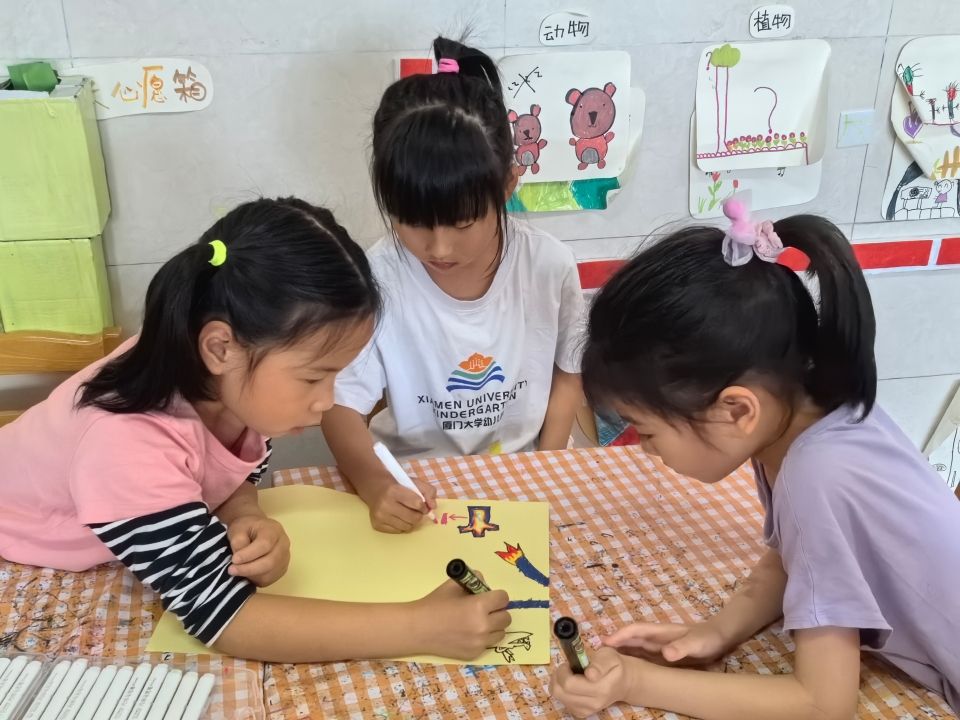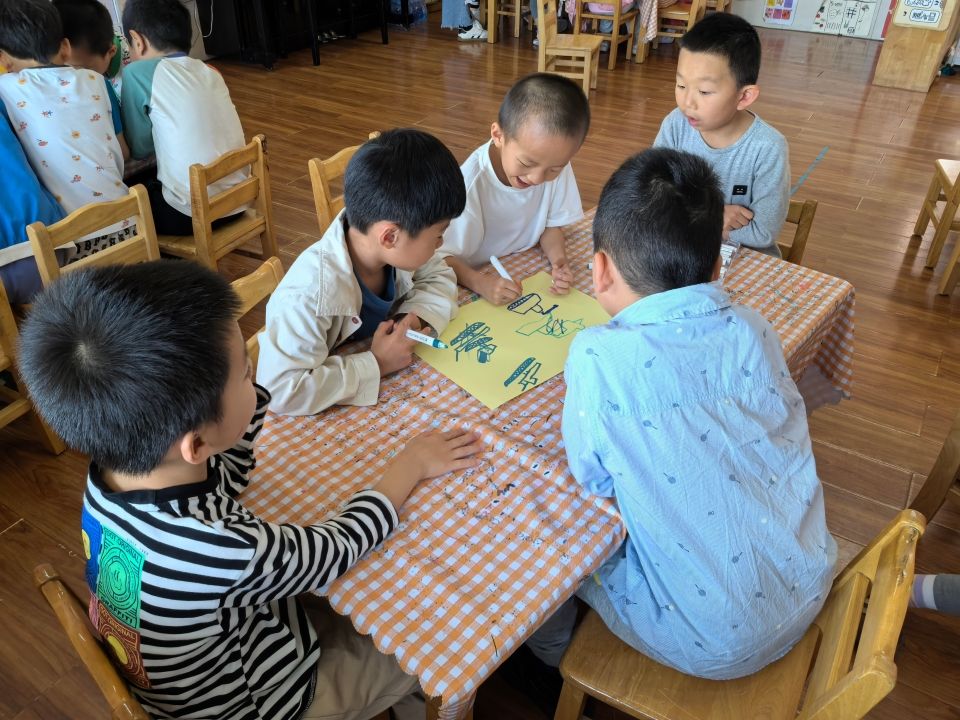 “我们可以来场篮球比赛吧?”“男生一组,女生一组。”“我觉得不公平,男生本来就比女生跑得快。”“我们先做一个比赛计划吧!”我们商量好规则、时间、场地后,开始分组做计划、设计队标。比赛分为两队,一队是“飞龙”队,一队是“小虎” ,上场比赛的人数均为10人,老师为裁判员,每队还分别有候补队员和后勤医护人员。