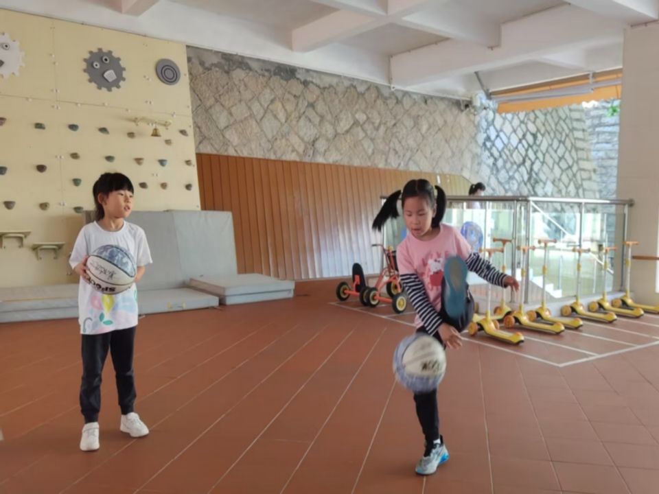 生命在于运动,锻炼有益健康。一粒小小的篮球,在大四班宝贝们的不断探索下,挖掘出各式各样有趣的玩法,从中不仅锻炼了运动技能,同时也提高了伙伴间团结协作的意识。亲爱的小朋友们,快跟着大四班的篮球宝贝们一起运动起来吧!