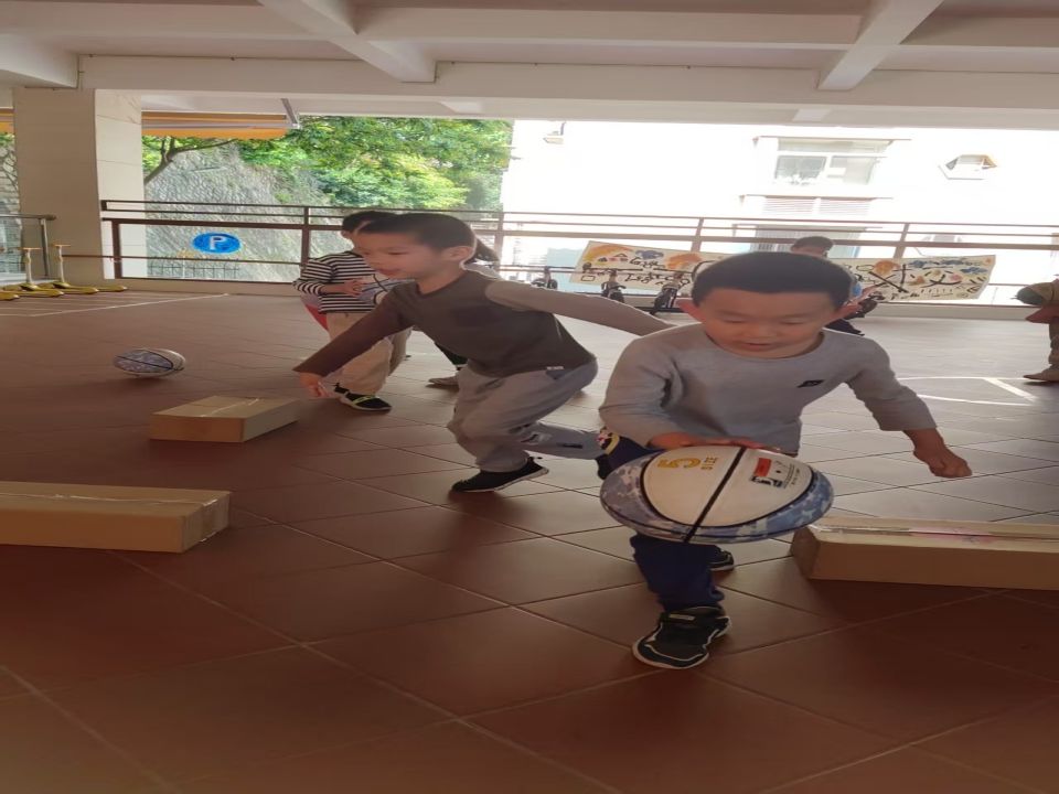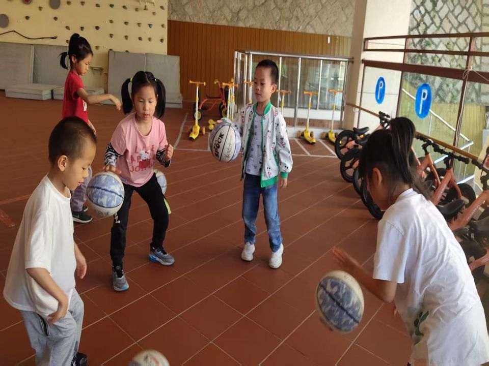 说起篮球,大四班的宝贝总能聊个不停,他们对篮球的痴迷不仅仅在聊天的内容里,户外活动的时间,也总会看到他们三五成群的汇集在一起玩耍。一粒普普通通的篮球,可以玩转出什么花样呢?让我们一探究竟吧.