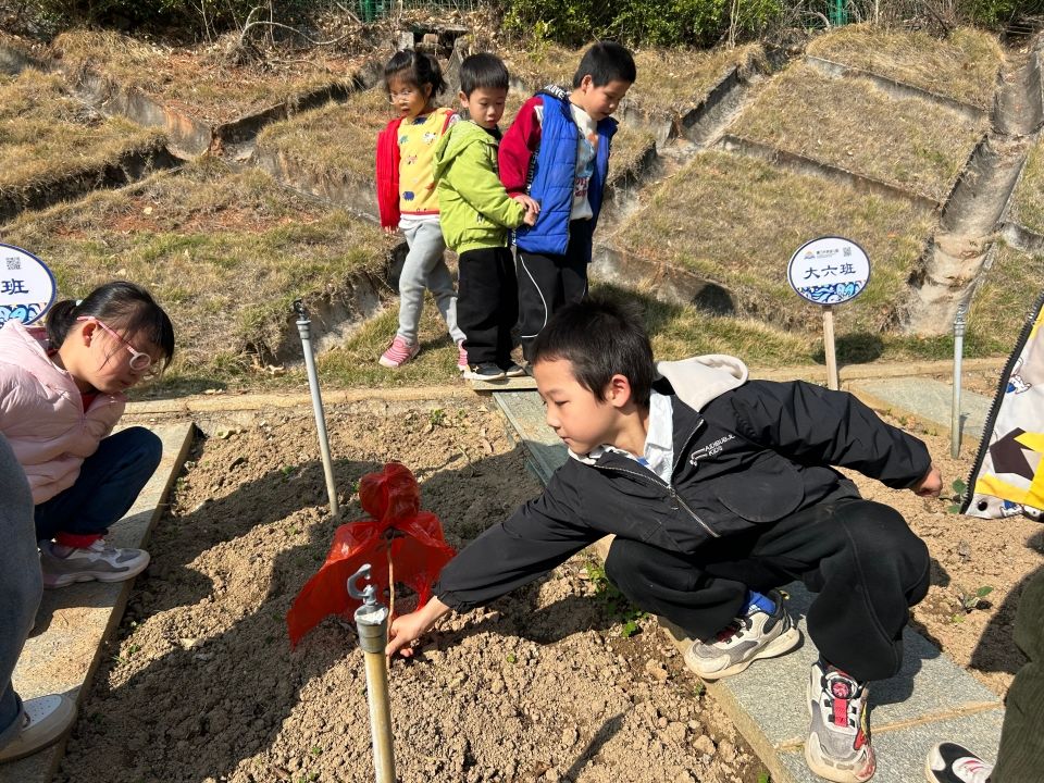 阳光明媚的春天里,我们大五班的菜地又出现了忙碌的小身影。他们看着老师松土,忙着拔草、浇水,种下了大家最喜欢的豆子。何老师说:“小鸟最喜欢吃种子了,要是我们种下的种子被小鸟啄了,小豆子就长不出来了。”怎么办?阳阳说:“我去过一个农庄,我看到稻草人,姐姐说有了它,小鸟就不敢来啄庄稼了”。于是,大家决定制作稻草人,守护新种下的豆子。“要做几个稻草人?”孩子们叽叽喳喳说了起来:“做两个,因为我们有两畦地。”
