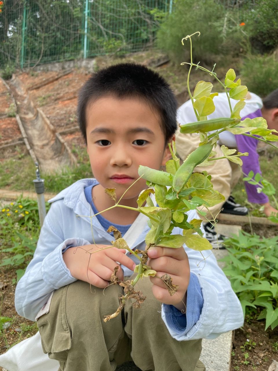 收获时节,在游戏中胜出的图南小朋友捧着饱满的豆荚,脸上洋溢着比阳光还灿烂的笑容——这是我们和稻草人共同守护的成果。