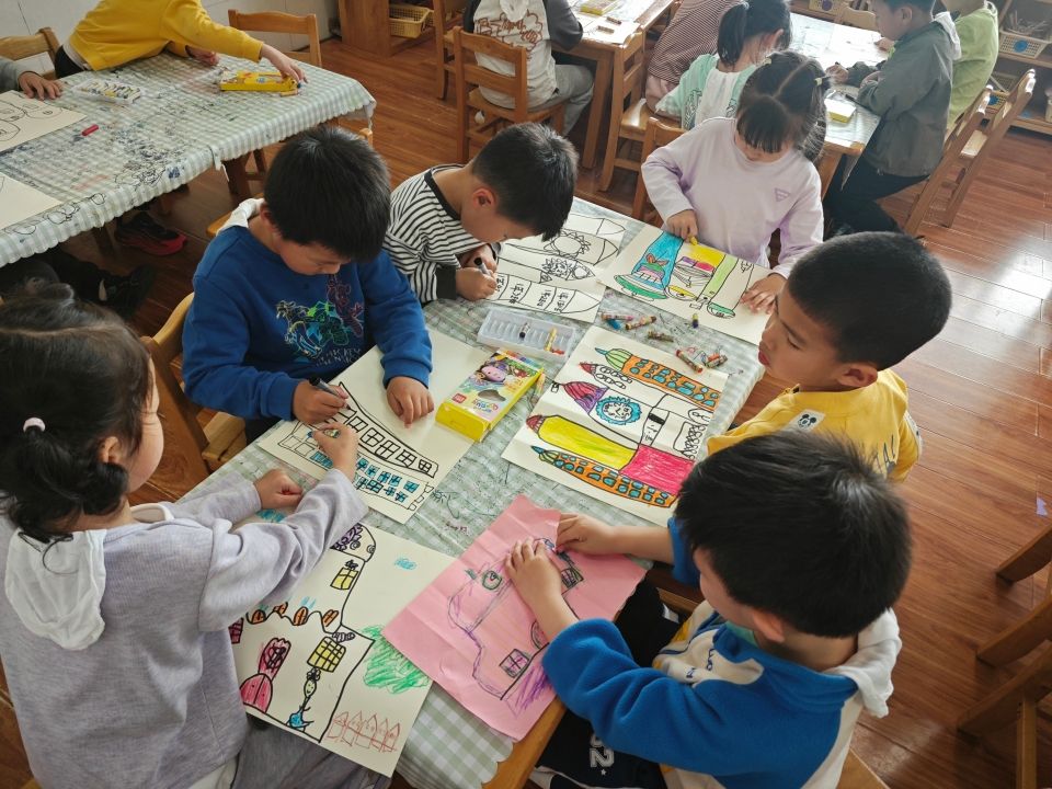 绘画区成了孩子们创作的天地。他们拿起五彩斑斓的画笔,专注地描绘心中的小学教学楼。有的画下粉紫色相间的城堡式教学楼,尖尖的塔顶还飘扬着彩色旗帜;有的勾勒出蓝白配色的多层大楼,每层都有着大大的落地窗。一幅幅画作色彩鲜艳,虽然笔触稚嫩,却生动展现出孩子们眼中充满创意的小学教学楼模样。
