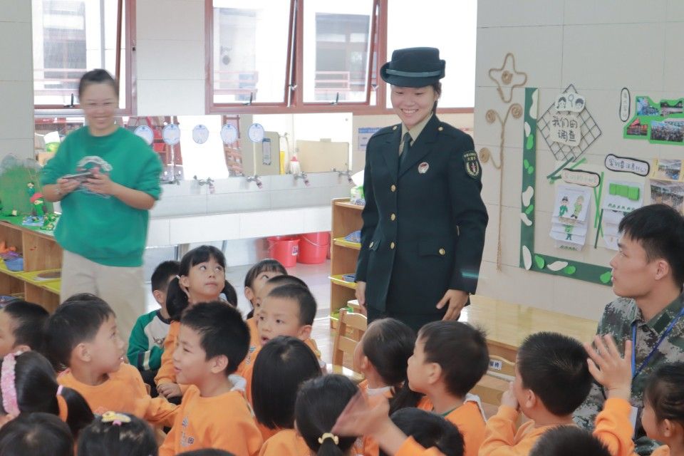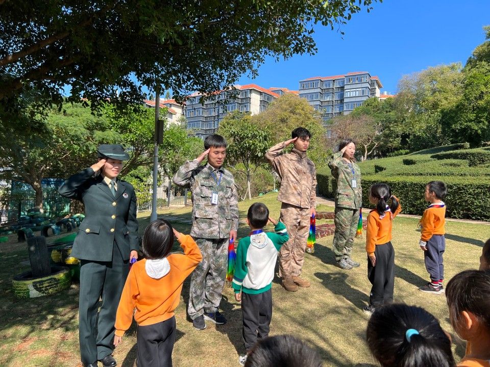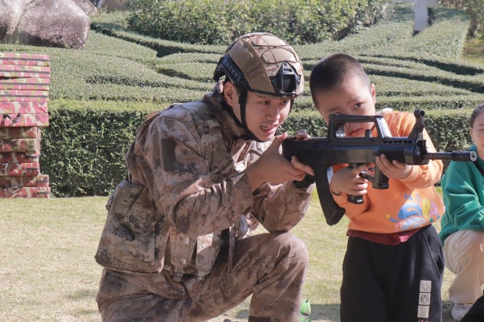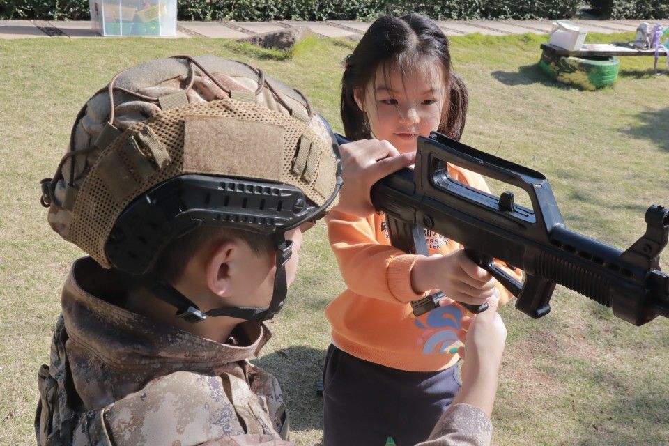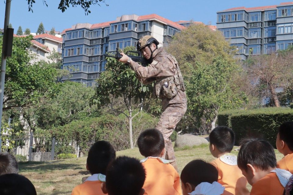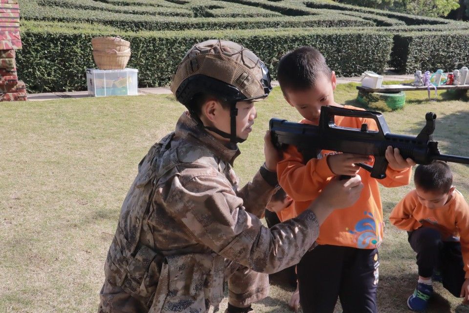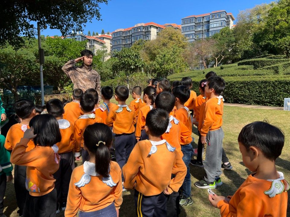 孩子们对哥哥姐姐的装备充满了好奇,看到孩子们热切的求知欲,教官哥哥姐姐们详细地介绍了其自身装备及用途,耐心地跟小朋友们分享自己的军营故事,详细介绍了战士的生活,认识了人民军队等国防知识。