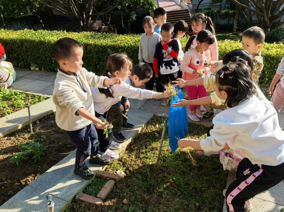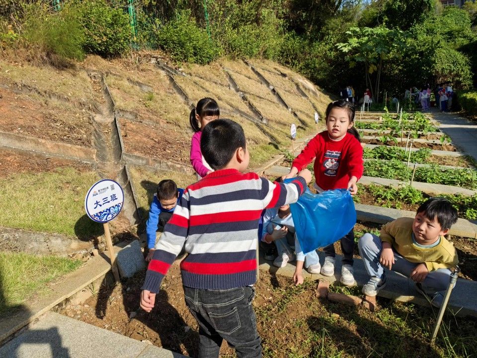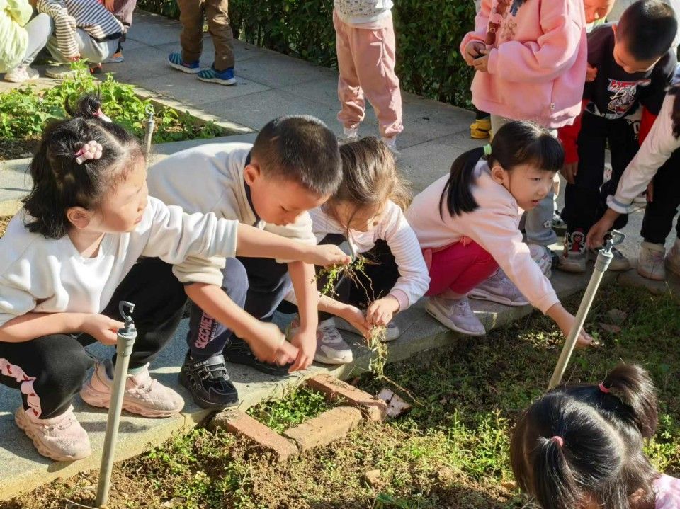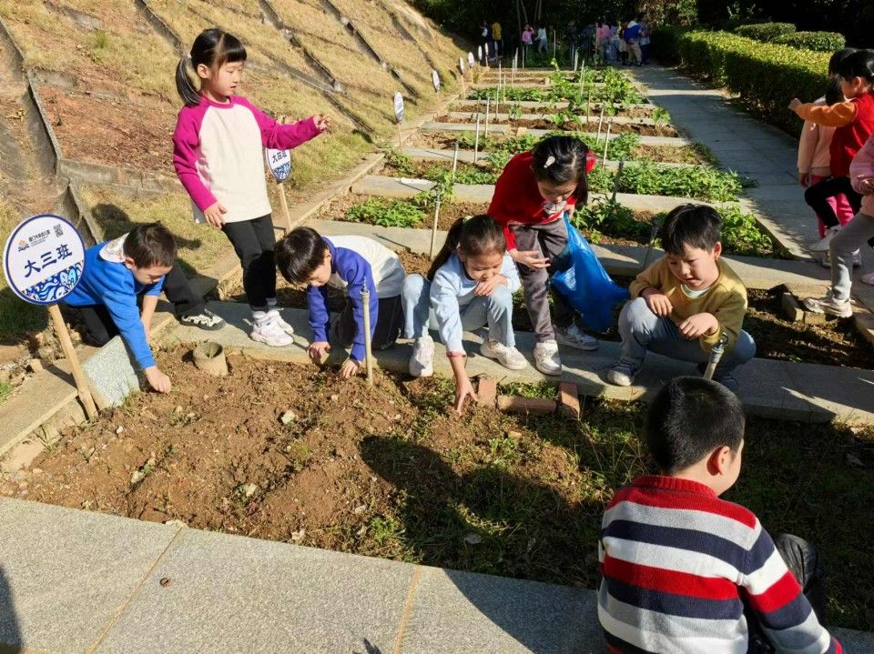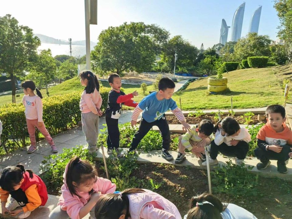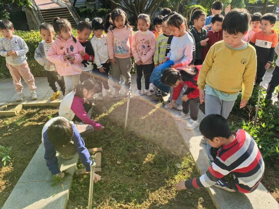 孩子们开启了一场特别的“田园大改造”面对土地里杂乱生长的杂草,小手仔细地揪着那些细小的杂草,眼睛瞪得大大的,生怕遗漏了任何一株。不一会儿,原本杂草丛生的土地就被孩子们清理得干干净净。接着又在在土地上挖出一个个小坑,然后轻轻地把菜苗放进去,再用土掩埋好,还不忘浇上一点水,边浇水边说:“你要快快长大哦,变成大大的西兰花和花菜。”孩子们在这片小小的土地上忙得不亦乐乎,他们的脸上洋溢着期待与喜悦,在劳动中感受着大自然的神奇与馈赠,也体会到了种植的艰辛与快乐。