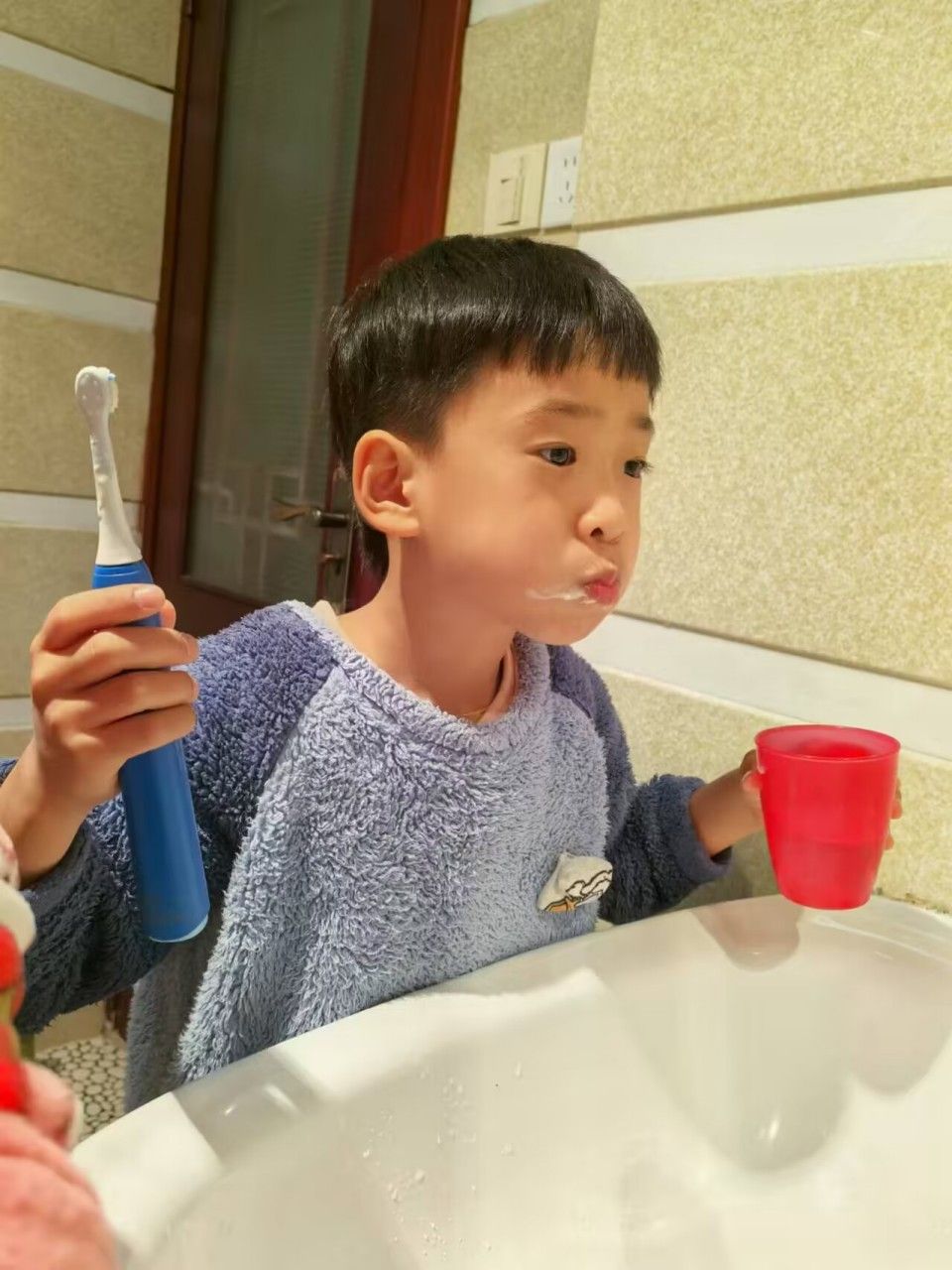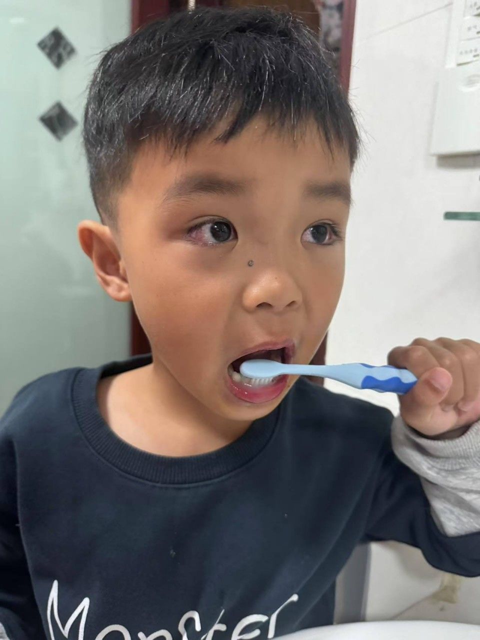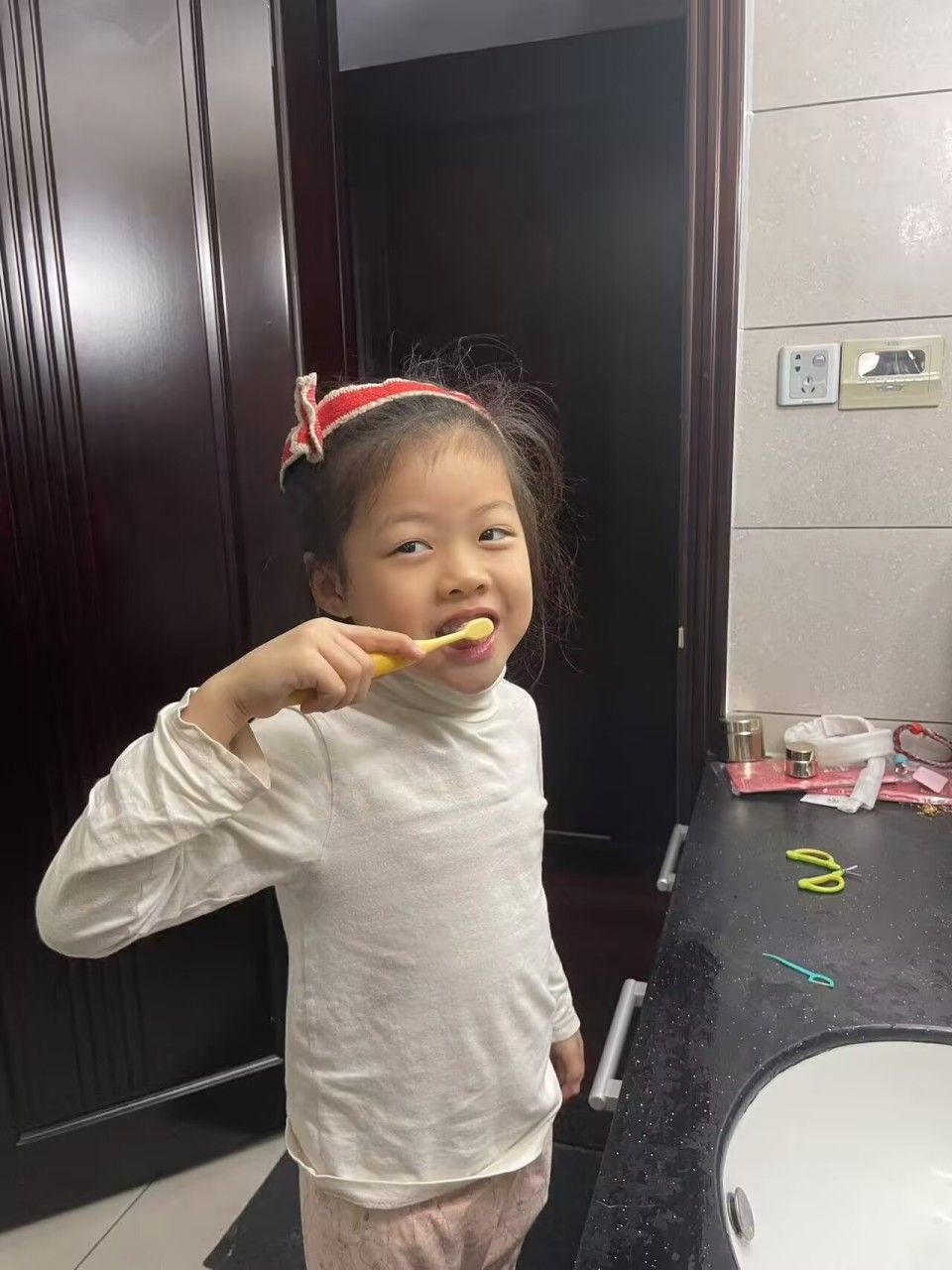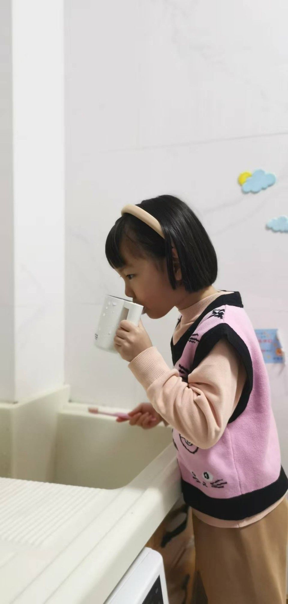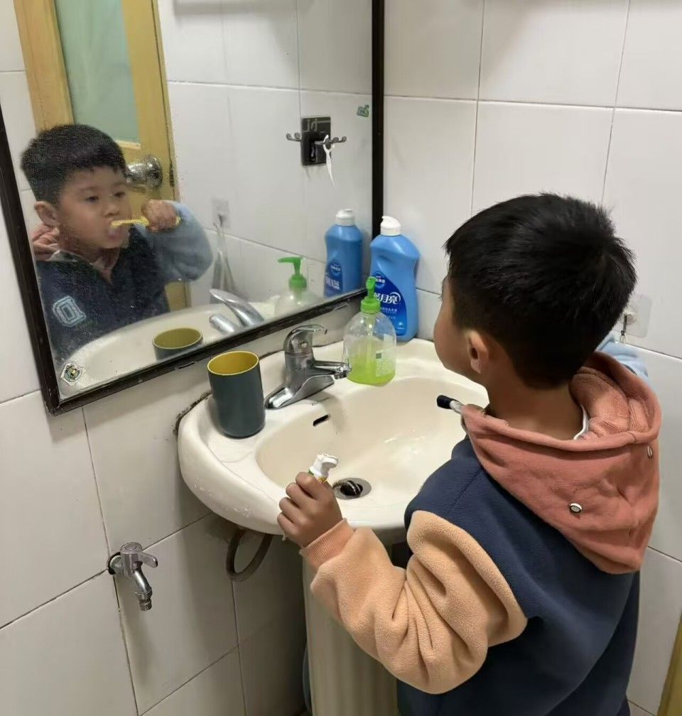 回到家里,我们早晚刷牙,饭后漱口,挤上牙膏,拿起水杯,开始刷牙喽。你们瞧,我们多能干!把自己的小白牙刷的多闪亮呀!
