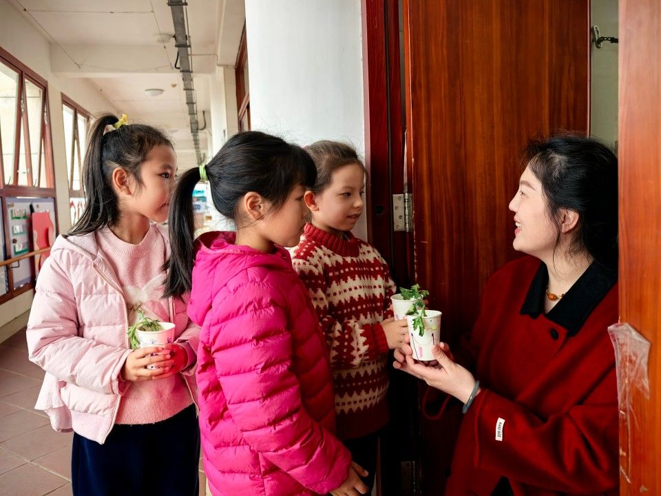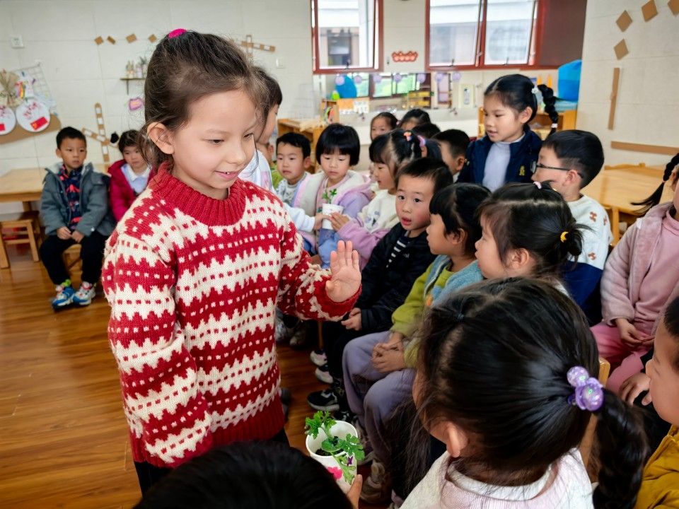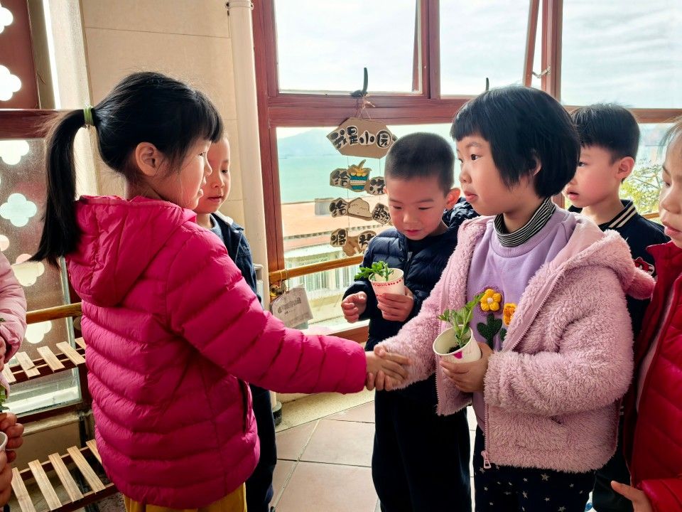 看!孩子们亲手种下小植物已经发了芽,盼望着小植物快快长大的同时还把小生命传递到各个班级小朋友的手里,一同分享喜悦。